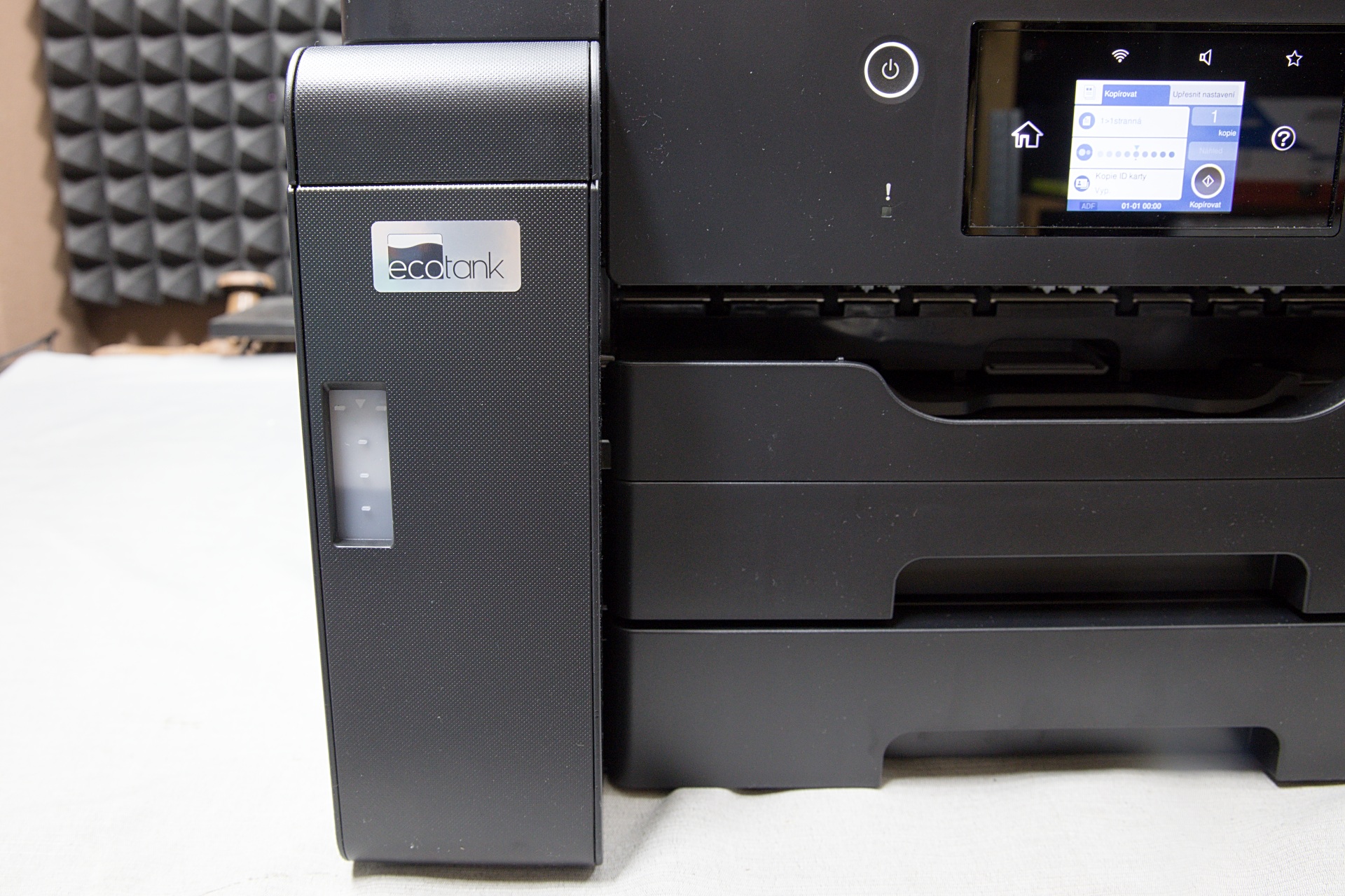 Dva zásobníky na papier, ktoré sa plnia spredu majú kapacitu 250 listov každý. Dva sú preto, aby ste prípadne mohli podľa potreby tlačiť na dva druhy, alebo formáty papiera, napríklad papiere formátu A3 a bežné kancelárske papiere formátu A4. Zadný podávač má kapacitu 50 listov A3. Rovnakú kapacitu 50 listov má aj automatický podávač dokumentov pre obojstranný skener. Na priame ovládanie slúži farebný dotykový displej s uhlopriečkou 6,8 cm. Samozrejmosťou je pripojenie nielen cez Ethernet a USB, ale aj cez WiFi, pričom je podporovaná aj technológia Apple AirPrint. Cez aplikáciu Epson iPrint4 môžete posielať dokumenty na tlač zo smartfónov a tabletov
