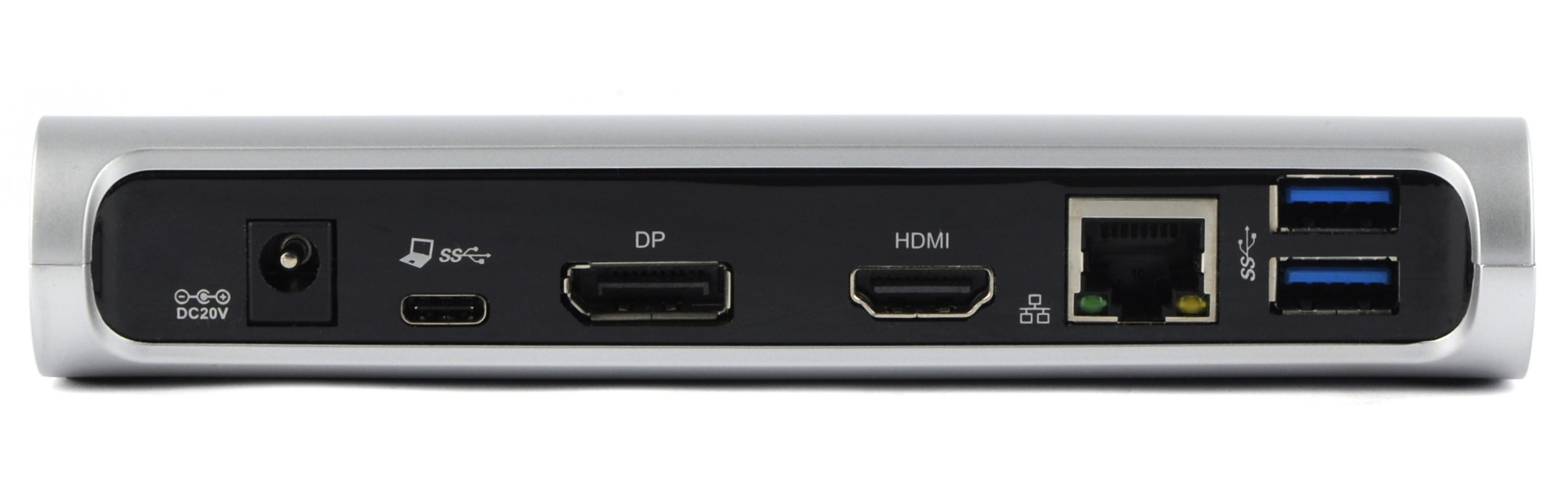 Z videovýstupov je k dispozícii HDMI 1.4 a DisplayPort 1.2. K monitoru s rozlíšením UHD (3840 × 2160 px) sa preto veľmi nehodí, nedostanete z neho viac než 30 Hz. Zaujímavejšia je prevádzka s dvoma lacnejšími monitormi, kde do rozlíšenia 1920 × 1200 px môžete mať 2× (HDMI + DP) 60 Hz. K tomu notebook rozšírite o tri porty USB 3.0, ďalší USB typu C, ako aj RJ-45 na pripojenie pevnej siete. To sa hodí v prípade potreby napríklad pri tenkých notebookoch, na ktorých profil sa tento konektor už nezmestil. Vpredu nechýba ani 3,5-milimetrový jack, škoda však, že je iba jeden (združený). Separovaná konfigurácia jedného vstupného a jedného výstupného by vyriešila problém nejedného zariadenia, kde mikrofón zvlášť nezapojíte.