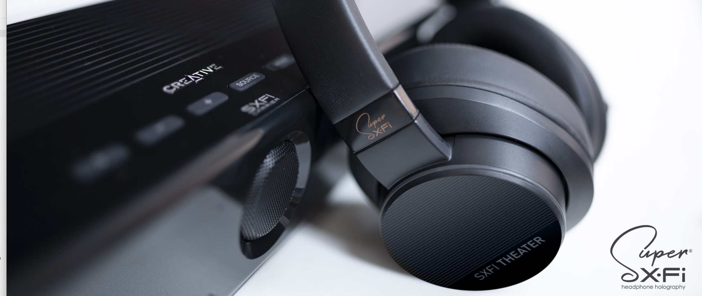 SXFI je skratkou technológie Super X-Fi Slúchadlá využívajú rádiovú komunikáciu, ktorá je prakticky bez latencie. Funguje tak, že pomocou mobilnej aplikácie odfotíte tvár spredu a obidve uši. Takýmto spôsobom sa získajú údaje o priestorovej dispozícii tvaru zvukovodov. Následne sa tieto údaje spracujú a vytvorí sa váš osobný profil. Ten sa potom prenesie do slúchadiel. Zvukový profil sa potom použije pri reprodukcii zvuku tak aby signálovým procesorom upravený zvuk v sústave mušľa, vonkajšie ucho vytvoril čo najlepší akustický a priestorový dojem, takže počúvate personalizovaný zvuk vygenerovaný na základe jedinečnosti akustickej sústavy zvukovodov poslucháča. Keď takéto slúchadlá pripojíte k soundbaru budete môcť počúvať personalizovaný priestorový zvuk bez toho, aby ste rušili okolie. Pri počúvaní cez slúchadlá soundbar ani subwoofer nehrá. Možno si položíte otázku aký význam má pripájanie slúchadiel k soundbaru. Soundbar v tomto prípade poslúži na dekódovanie priestorového zvuku, ktorý potom cez rádiovú komunikáciu posiela do slúchadiel. Ak by ste slúchadlá pripojili priamo k televízoru, na slúchadlovom výstupe, ak ho televízor vôbec má, alebo k soundbaru bez podpory dekódovania priestorového zvuku, na slúchadlovom výstupe by ste mali len stereo zvuk. Slúchadlá Creative SXFI THEATER si musíte kúpiť samostatne, avšak niekedy sú v rámci marketingových promo akcií pribalené k soundbaru so subwooferom.