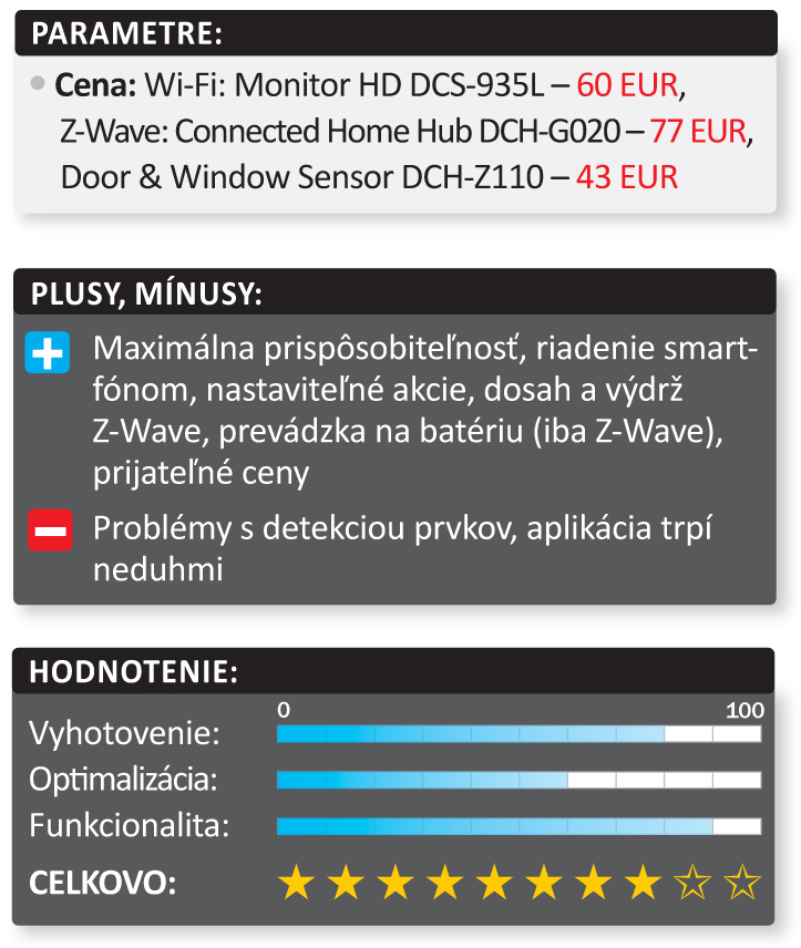 Mydlink Home je skvelé riešenie pre záujemcov o smart domácnosť s veľkou prispôsobiteľnosťou vlastným podmienkam a potrebám. Riadenie pomocou smartfónu či tabletu je šikovný spôsob, aj keď na prospech by bola možnosť riadenia aj pomocou PC. Škoda problémov s detekciou prvkov v systéme, ktoré značia, že v aplikácii treba vychytať niekoľko múch. Páči sa nám aj množstvo voliteľných prvkov, medzi ktorými je najzaujímavejší asi Wi-Fi Audio Extender, umožňujúci bezdrôtové streamovanie hudby kdekoľvek, kde máte elektrickú zásuvku.