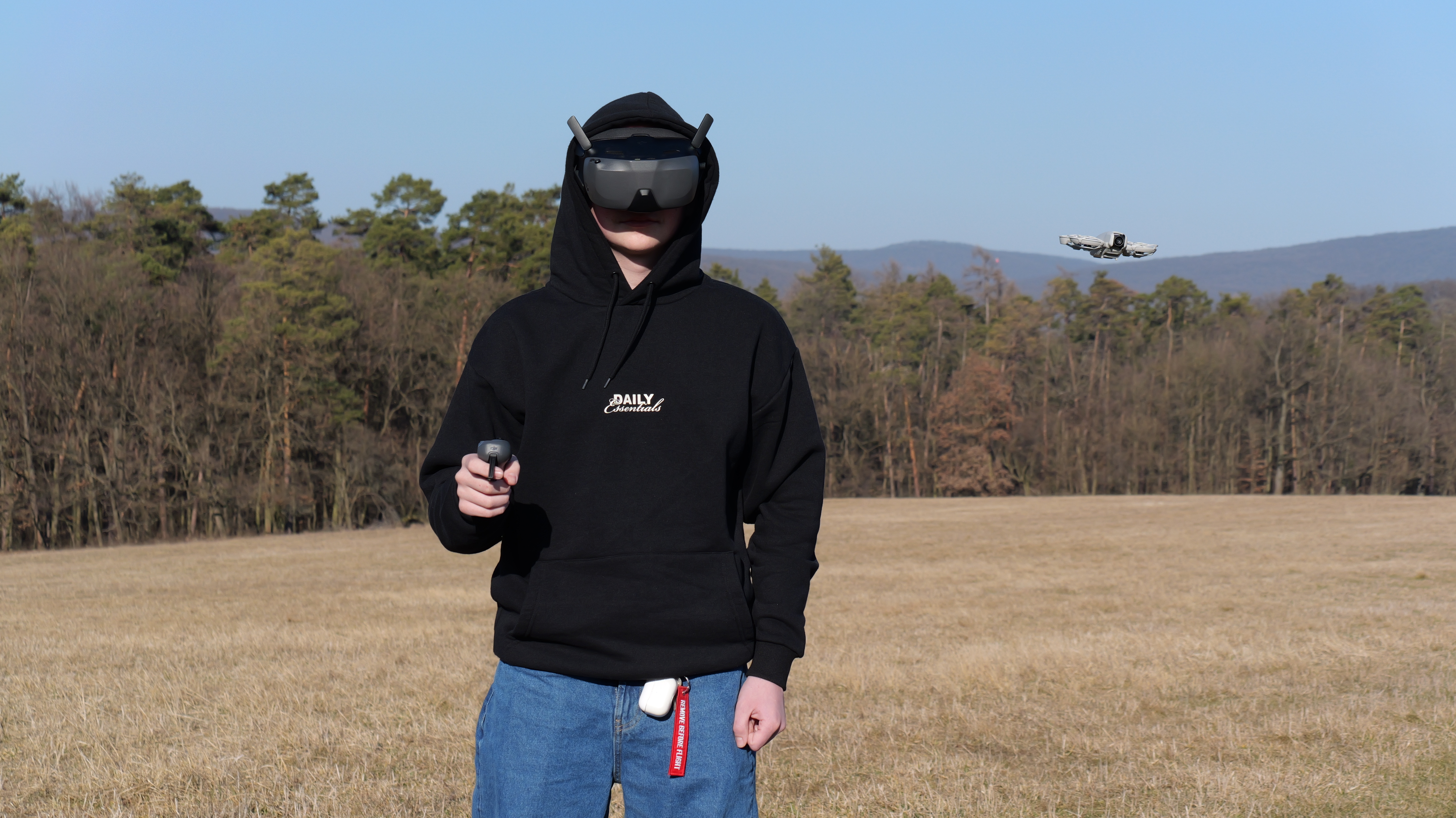 súpravy Motion Fly More Combo sú okuliare DJI Goggles N3, ktoré sú úplnou novinkou v ponuke DJI a sú vlastne aj najzaujímavejšia časť tohto kompletu. Samotné okuliare totiž vyjdú na necelých 270 eur, takže aj cena celého kompletu sa zmestí do 500 eur. Vďaka tomu ide v súčasnosti o FPV dron na trhu. V spojení s dronom Neo a ovládačom RC Motion 3 poskytuje skutočne pohlcujúci zážitok FPV, akoby ste sedeli priamo v kokpite. Okuliare na rozdiel od drahých modelov obsahujú iba jeden, podobne ste použili napríklad očami displeju, disponujú full HD displejom (1080p) rozlíšením s pôsobivým 54° zorným poľom (FOV), a tak vzdušné scény ožívajú priamo pred vašimi. Vďaka priestrannému dizajnu sú okuliare pohodlné aj pre používateľov s dioptrickými okuliarmi, a to bez ďalších ďalších úprav. Vaše okuliare totiž používate pod nimi, takže nie sú potrebné dioptrické korekcie. Integrovaný hlavný popruh a batéria zaisťujú vyvážené rozloženie hmotnosti a komfortné nosenie. Praktická je aj funkcia odlievania jedným dotykom, ktorá aktivuje ventilátora rýchlo odstráni zahmlenie šošoviek. O prenos obrazu sa stará pokročilý systém DJI O4 FHD, ktorý ponúka živý náhľad v rozlíšení 1080p/60fps s minimálnou latenciou 31 ms a dosahom až 13 km. Systém automaticky volí optimálnu frekvenciu medzi 2,4 GHz a 5,8 GHz na stabilný prenos s maximálnym dátovým tokom 60 Mb/sa pri plynulom SyncSmooth obrazu aj vo vysokých rýchlostiach. Príjemne prekvapila vysoká kvalita obrazu, ale aj jednoduché ovládanie a príjemná vyváženie súpravy, ktorá výborne drží na hlave, aj keď pod ňou máte dioptrické okuliare. Okuliare aj tomu, že prenos pomocou Ocusync4, sú v súčasnosti kompatibilné iba s dronmi DJI Neo, Avata 2 as jednotkami DJI O4 Air Unit/DJI O4 Air Unit Pro použitými v custom dronoch. Zostáva iba dúfať, že časom rozšíri podporu aj na ďalšie drony využívajúce O4. Ovládač DJI RC Motion 3 umožňuje intuitívne ovládanie dronu pohybovými zápästiami a funguje aj ako AR kurzor na nastavenie funkcií pred vzletom alebo počas vízie. Plne nabité okuliare DJI Goggles N3 vydržia v prevádzke až 2,7 hodiny, čo zodpovedá približne 13 letovým batériám dronu Neo, a poskytujú dostatok času na kreatívne lietanie. Celá súprava DJI Neo Motion Fly More Combo predstavuje vynikajúce riešenie pre tých, ktorí hľadajú malý, ľahký, všestranný dron s možnosťou autonómneho lietania aj pohlcujúci FPV zážitku, doplnený o dostatok doplnkov a dlhšiu zábavu. V súprave je všetko okrem nabíjačky. Stačí nabíjačka USB-C s podporou PD, ideálne s výkonom aspoň 65 W na nabíjanie.