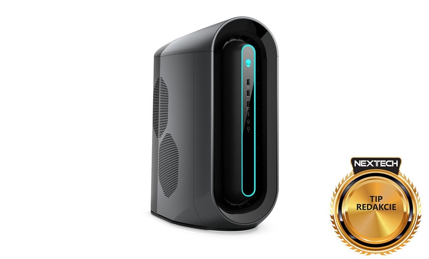 Už letmý pohľad na dizajn skrine tohto herného počítača prezradí príslušnosť do produktovej rodiny Alienware inšpirovanej prvkami sci-fi. Na testovanie som mal k dispozícii tmavosivý variant, ktorý marketingoví špecialisti štýlovo pomenovali Dark Side of the Moon. Predný panel má tvar podlhovastého nasávacieho otvoru turbíny, pričom profil skrinky sa smerom dozadu vertikálne zväčšuje Je to nielen efektné, ale aj funkčné, pretože výkonný procesor aj grafická karta si vyžaduje účinné chladenie. A mimochodom, pri vysokej záťaži chladiaci systém tak trochu ako turbína znie. U kancelárskeho počítača by to bola nevýhoda, u herného stroja to hráči očakávajú ako prejav vysokého výkonu.