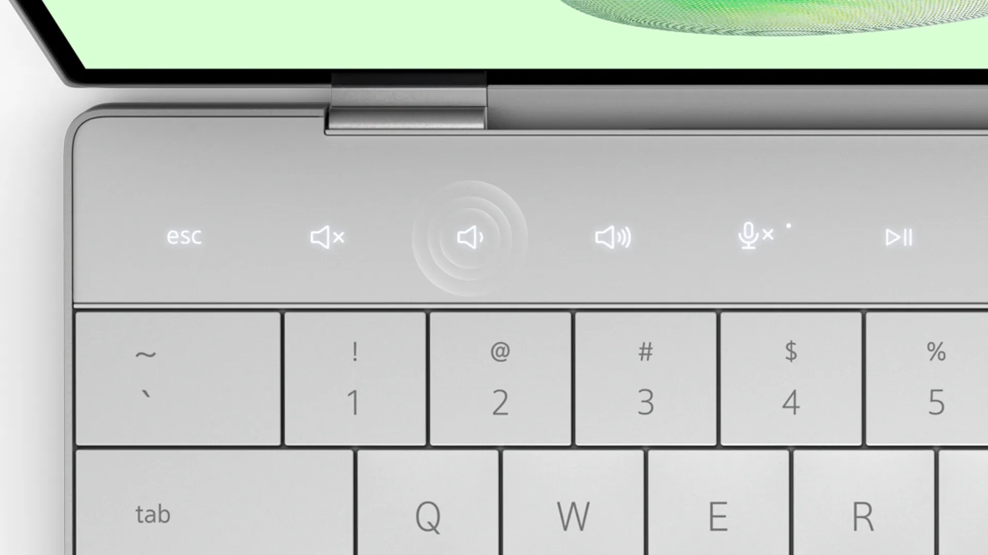 Futuristický dizajn v praxi znamená, že po roztvorení notebooku, skôr než ho zapnete, vás prekvapí, že Dell XPS 13 9345 zdanlivo nemá touchpad ani horný rad funkčných klávesov. Po zapnutí pochopíte pointu. Funkčné klávesy, na ktorých sú alternované funkcie na nastavovanie jasu, hlasitosti zvuku či prehrávanie multimédií, sú dotykové s podsvietenými symbolmi. A ak urobíte gesto tam, kde očakávate touchpad, bude to fungovať. Notebook touchpad má, len jeho plocha nie je nijako odlíšená od opierky dlaní, takže nemáte ani zrakovú, ani hmatovú informáciu, kde sa začína a kde končí. K čistote dizajnu prispievajú aj zapustené klávesy, ktorých horná hrana splýva do roviny s plochou okolo klávesnice a medzi klávesmi nie sú medzery. Zvyknúť si na takúto klávesnicu mi nerobilo žiadny problém. Podsvietené klávesy majú presný chod a príjemný zdvih asi 1,3 mm. V určitom bode počas stláčania pružný odpor klávesu náhle povolí, takže na klávesnici dokážete písať rýchlo a presne. Zatlačenie touchpadu nemá mechanickú, ale príjemnú haptickú reakciu. Škoda, že takúto hmatovú spätnú väzbu nemajú dotykové plochy nad klávesnicou.
