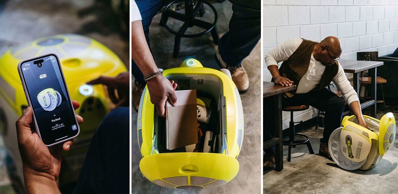 V podstate ide o špeciálnu verziu ich existujúceho modelu gitamini – malého pojazdného robota na prepravu osobnej batožiny. Dizajnom sa výrazne inšpiruje ikonickým droidom R2-D2, čo mu dodáva autentický vzhľad zo sveta Star Wars. Tento „batožinový“ droid dokáže pomocou kamier a senzorov rozpoznať svojho majiteľa a autonómne ho nasledovať rýchlosťou až 10 km/h. Vo svojom úložnom priestore odvezie náklad s hmotnosťou do 9 kg.