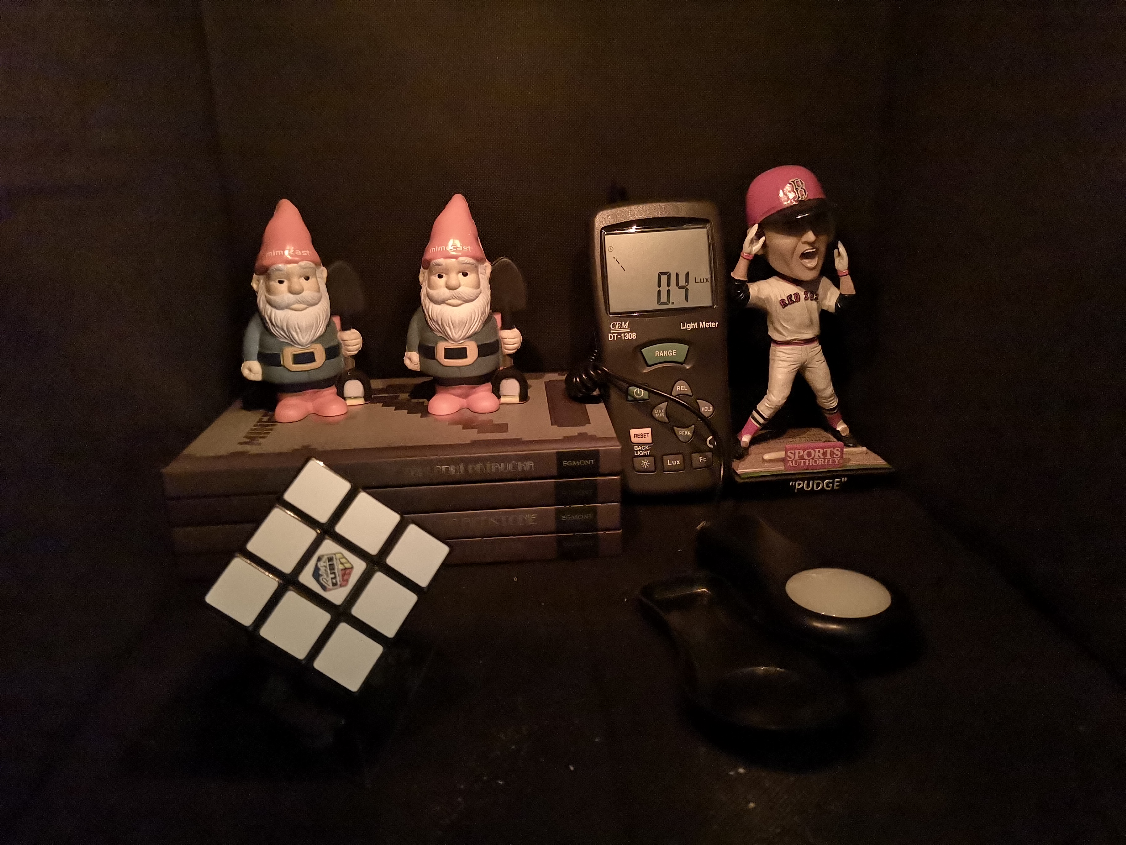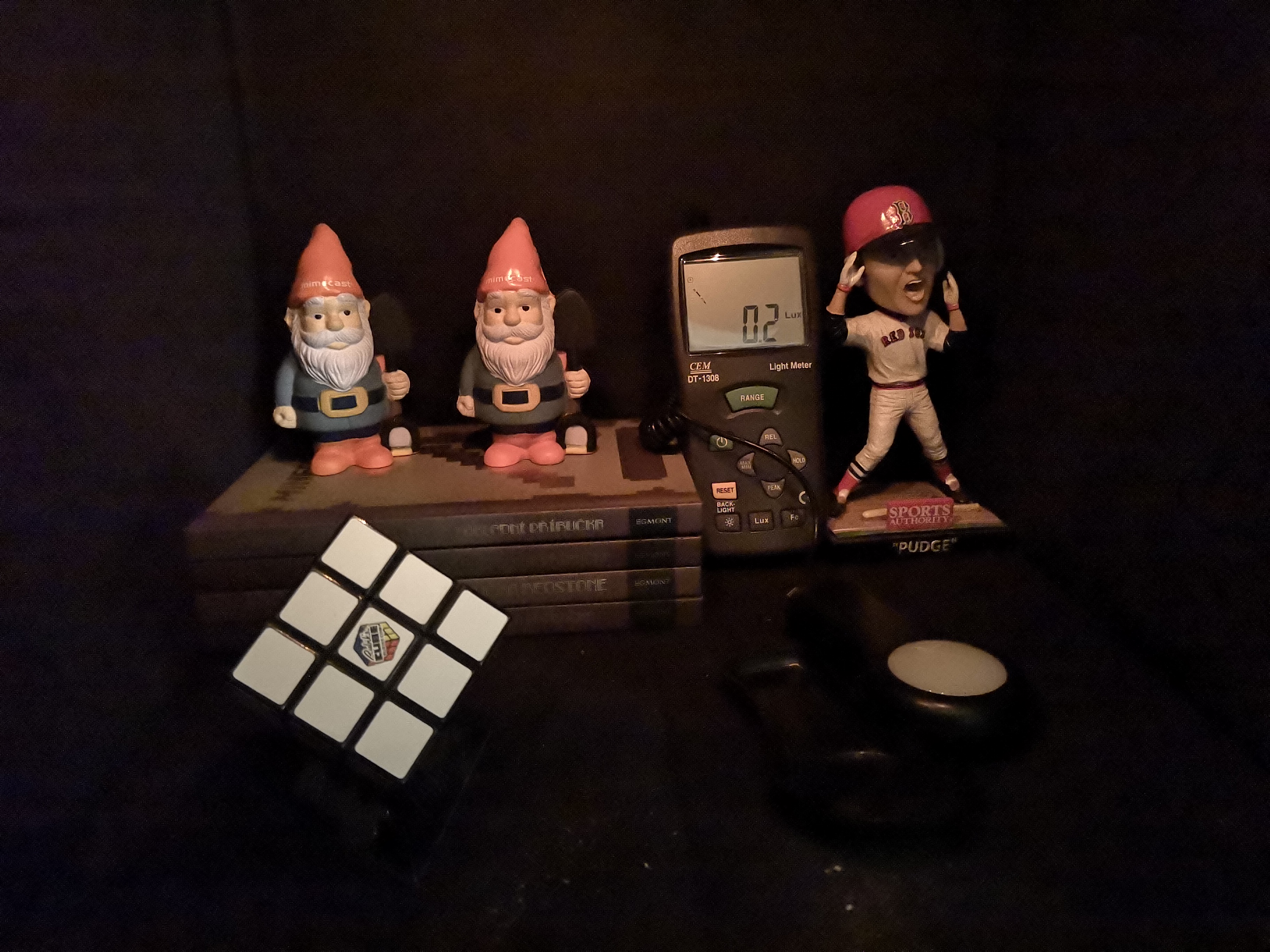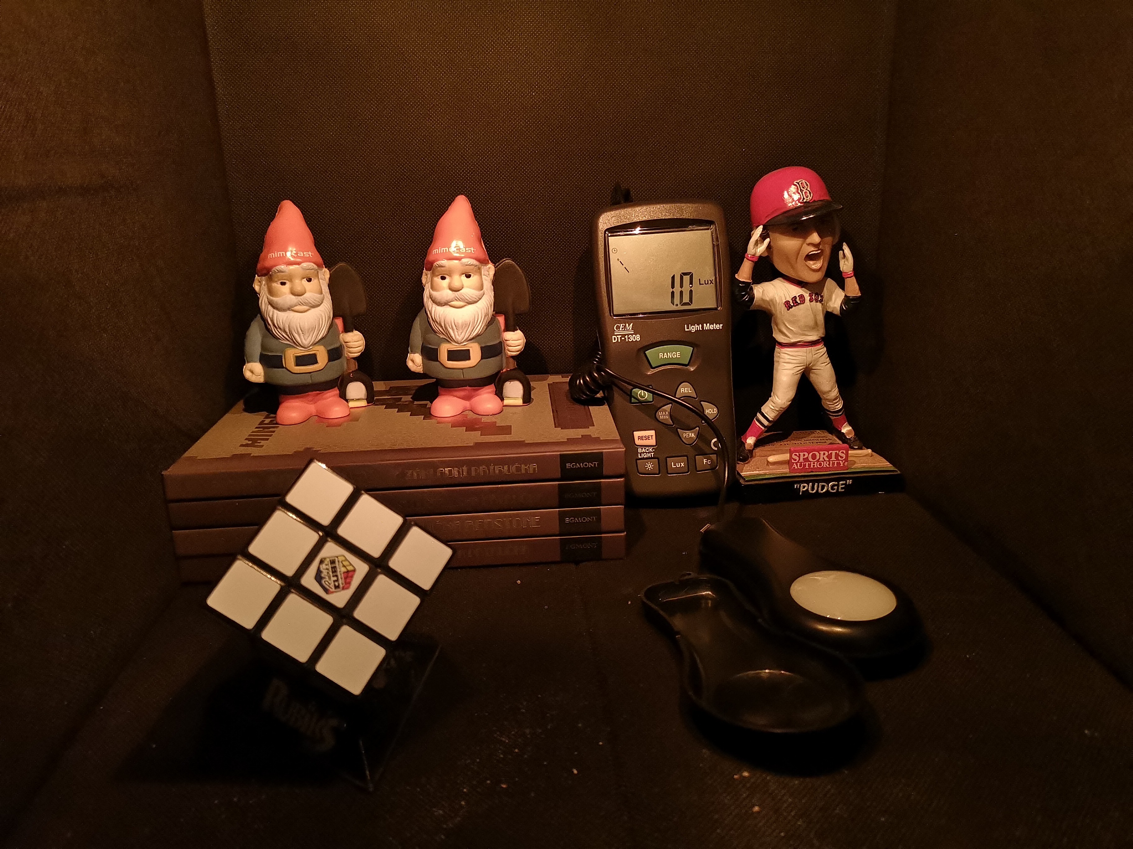 Nastavujem hodnotu osvetlenia 0,2 luxov. Huawei P20 v tomto prípade priam exceluje, napriek tomu že fotené predmety pri tejto úrovni osvetlenia sotva vidno, záber je plný detailov a úroveň šumu je veľmi nízka.
