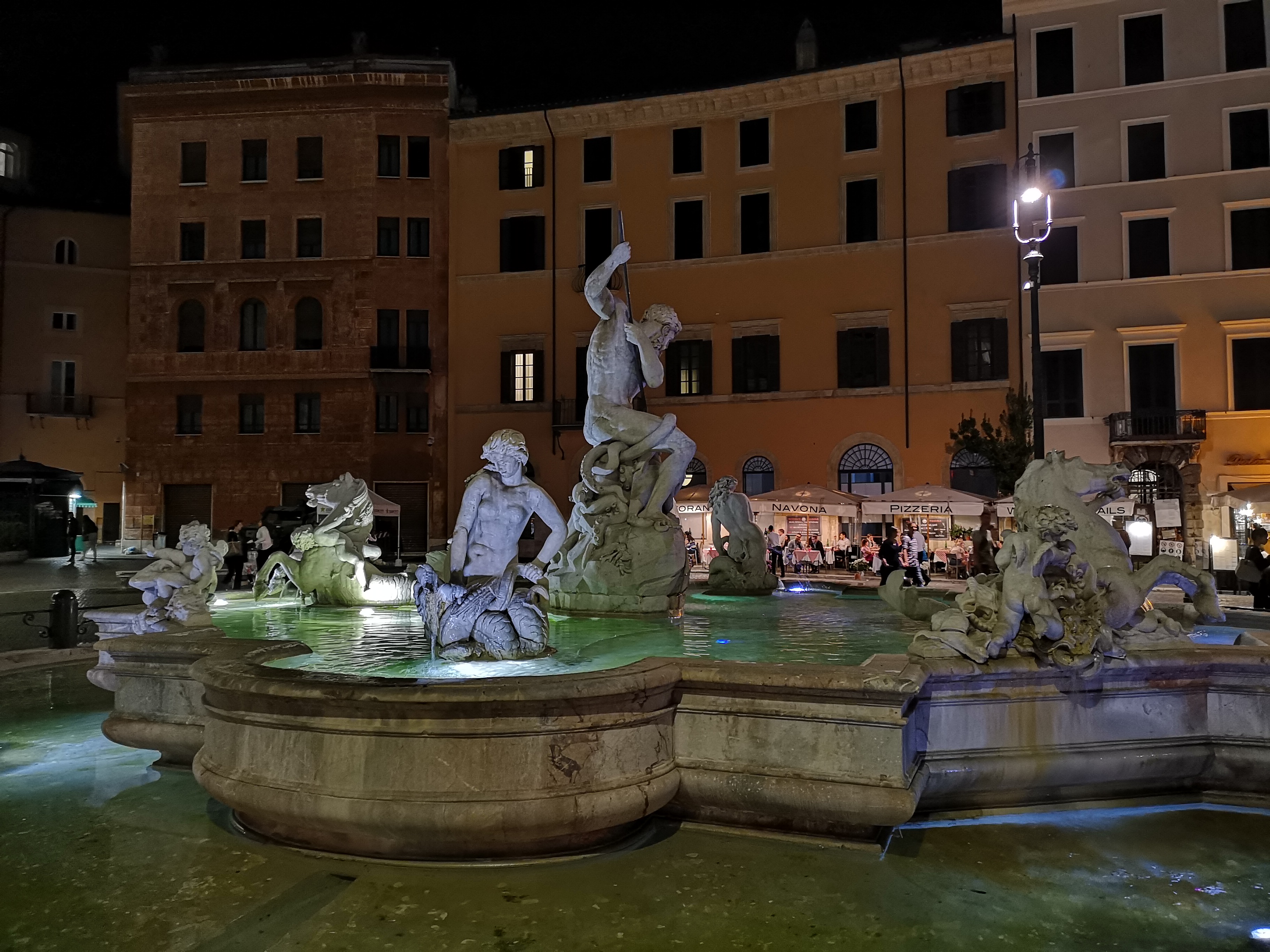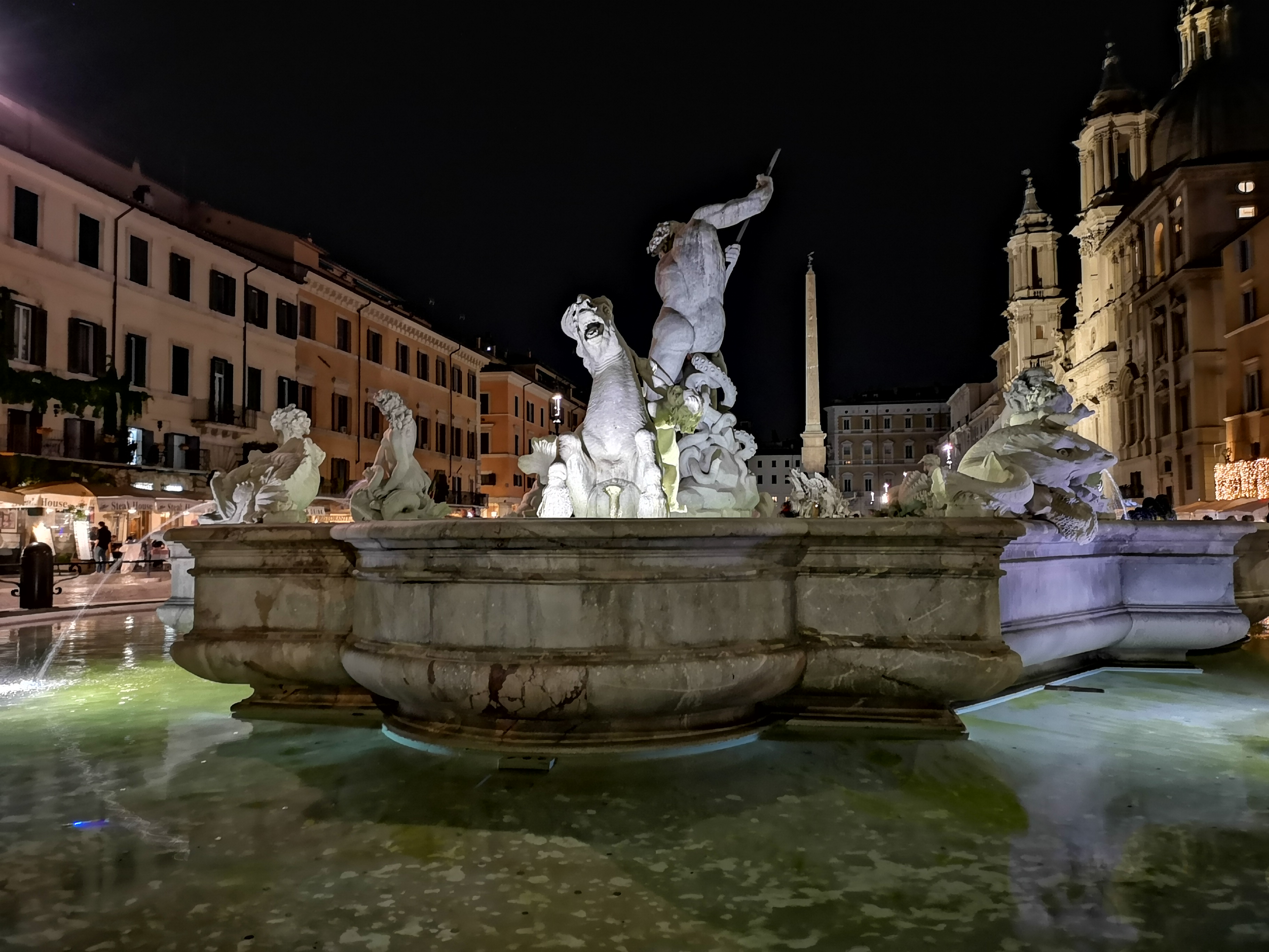 Nasledujúci záber tej istej fontány som robil z ruky v režime Noc a to bez akejkoľvek opory. Expozícia trvala 4 sekundy. Vďaka nízkemu ISO je obrázok bez rušivého šumu