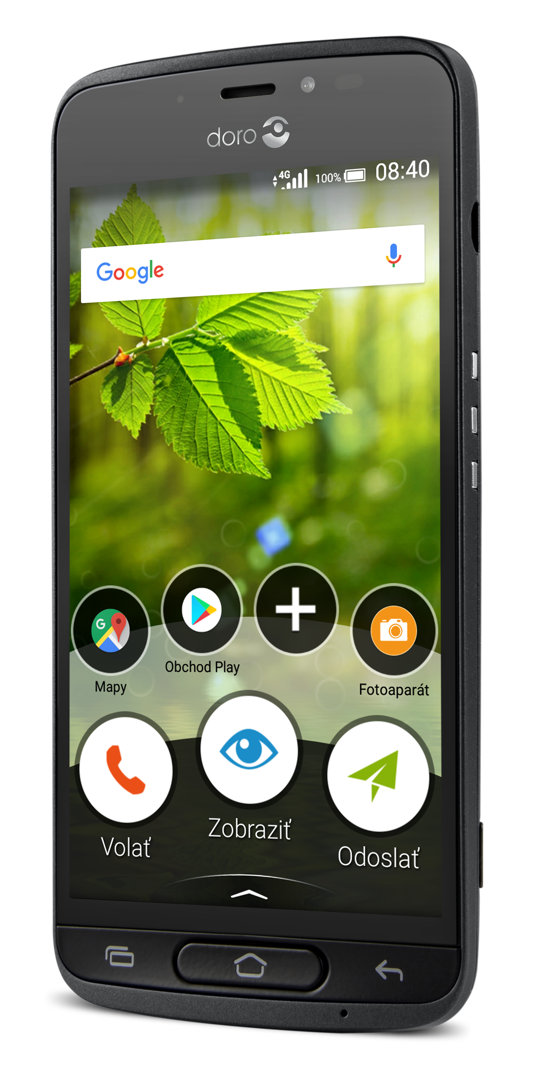 Po nastaveniach ma uvítala jednoduchá domovská obrazovka, umožňujúca základné funkcie, ako je telefonovanie, posielanie správ, prístup na internet a fotenie. Všetko toto je sprostredkované cez veľké, ľahko viditeľné ikony a zrozumiteľné opisy všetkých možných činností. Celá filozofia štruktúry aplikácií a programov je trochu iná, než sme zvyknutí pri klasických androidových telefónoch, ale švédsky výrobca Doro si dal jediné zadanie: aby bolo všetko čo najjednoduchšie, najzrozumiteľnejšie.