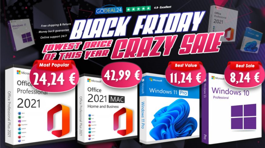 Keďže Čierny piatok je hneď za rohom, november môže byť vašou najlepšou príležitosťou v roku chytiť sa softvérových kľúčov od spoločnosti Microsoft. Ak máte nový počítač alebo chcete upgradovať svoj starý počítač, určite je ten správny čas kúpiť si softvérové kľúče od spoločnosti Microsoft za najnižšiu cenu v tomto roku z predaja softvéru Godeal24 Black Friday Software Sale.
