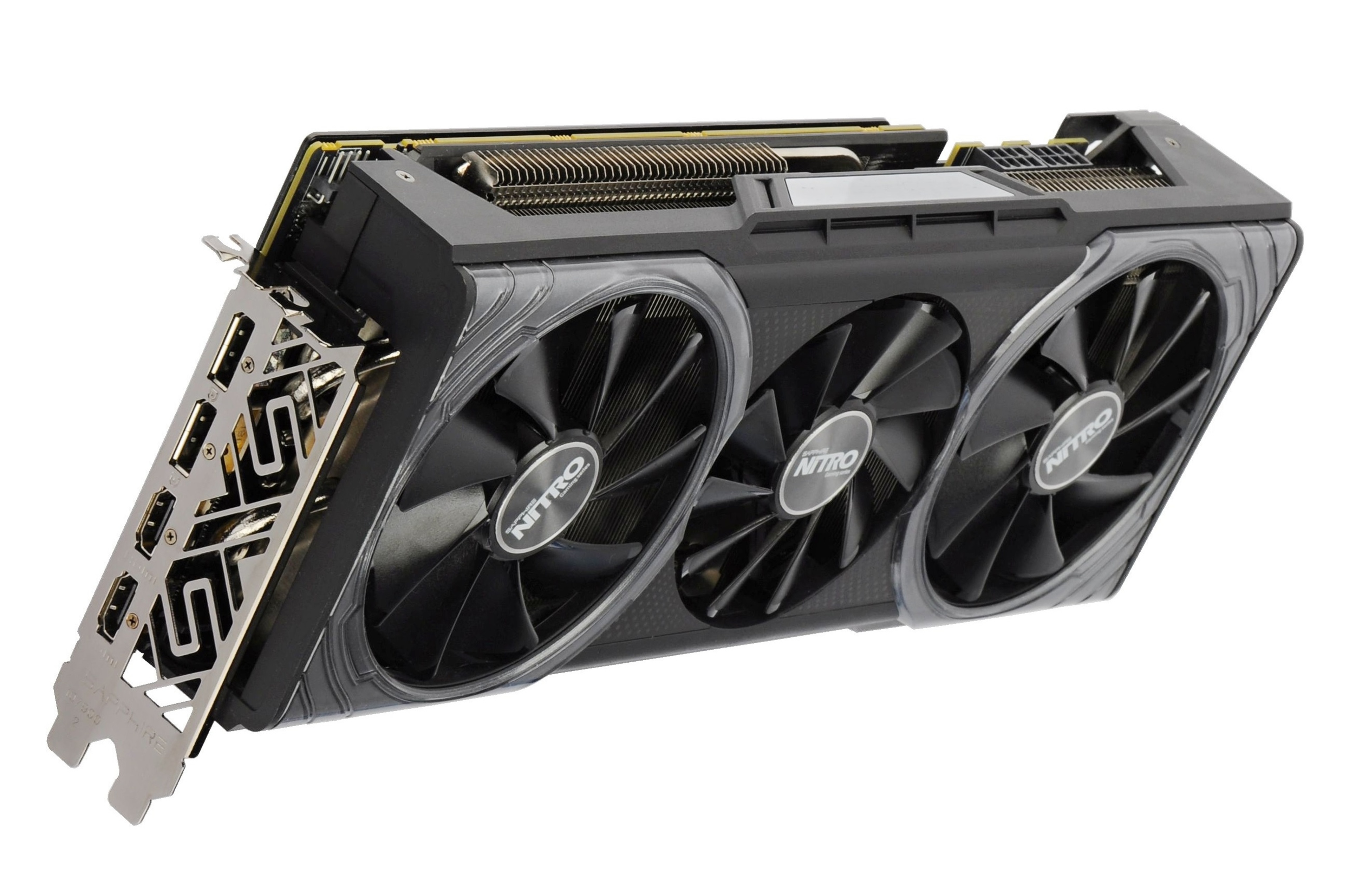 Sapphire je, samozrejme, v obraze a použil mimoriadne masívny chladič, s ktorým je karta jednou z najobjemnejších a najťažších vôbec, má hmotnosť 1490 g. Útechou je, že si aspoň stále drží a nepresahuje 2,5-slotový dizajn. Táto konštrukcia je natoľko masívna, že po upravení krivky PWM môžu fungovať ventilátory i na nízkych otáčkach a GPU bude mať stále pohodové teploty. No výraznejšie pískanie cievok (a to je druhý vážnejší problém tejto karty) aerodynamický hluk ventilátorov prebije, takže otáčky nemá význam znižovať pod továrenské nastavenia. Pred kúpou si dobre premerajte, či máte v skrinke 310 mm na grafiku. To je údaj prináležiaci Sapphire. Ale ani MSI Armor s 297 mm nepatrí k najkratším.