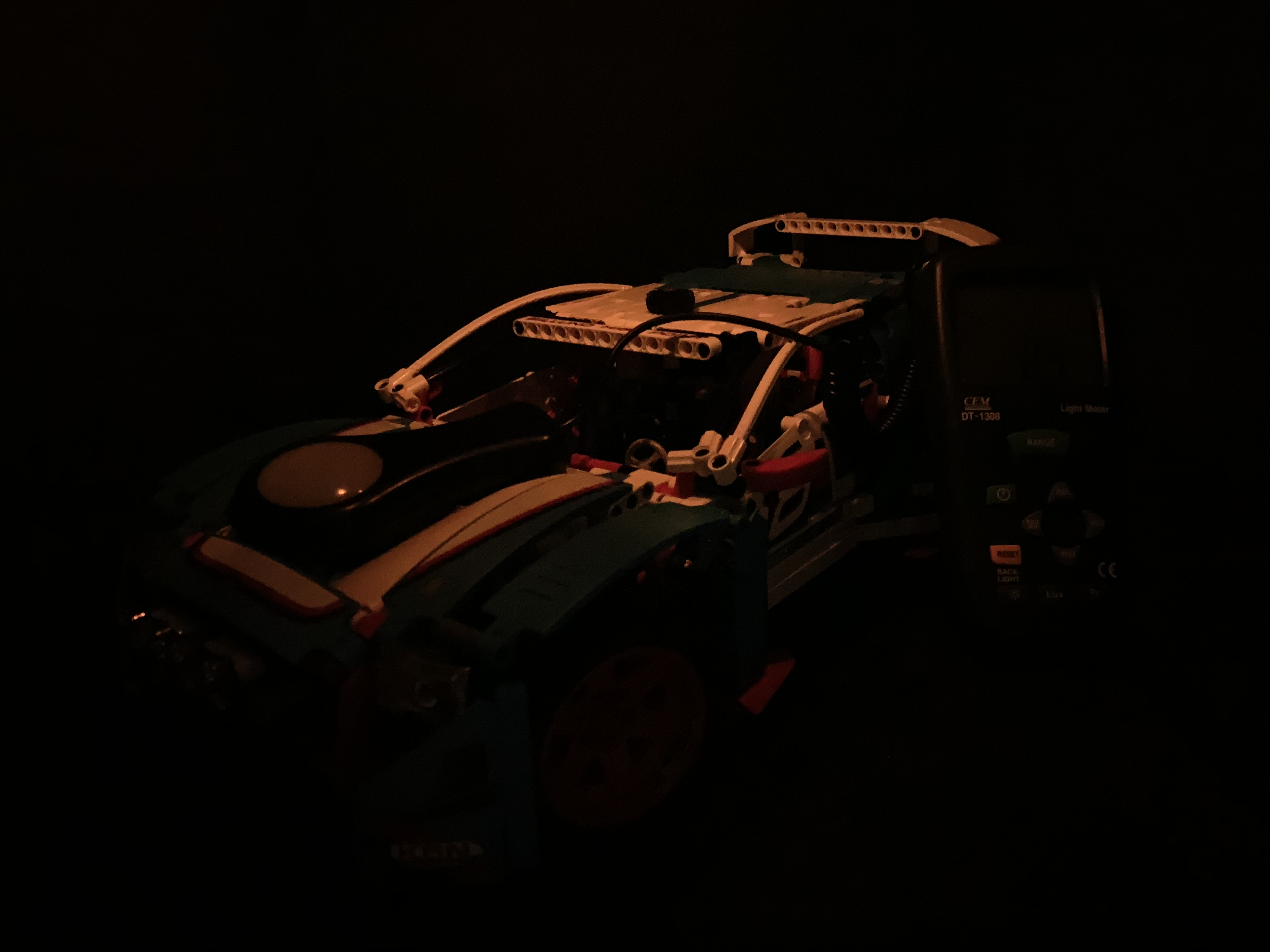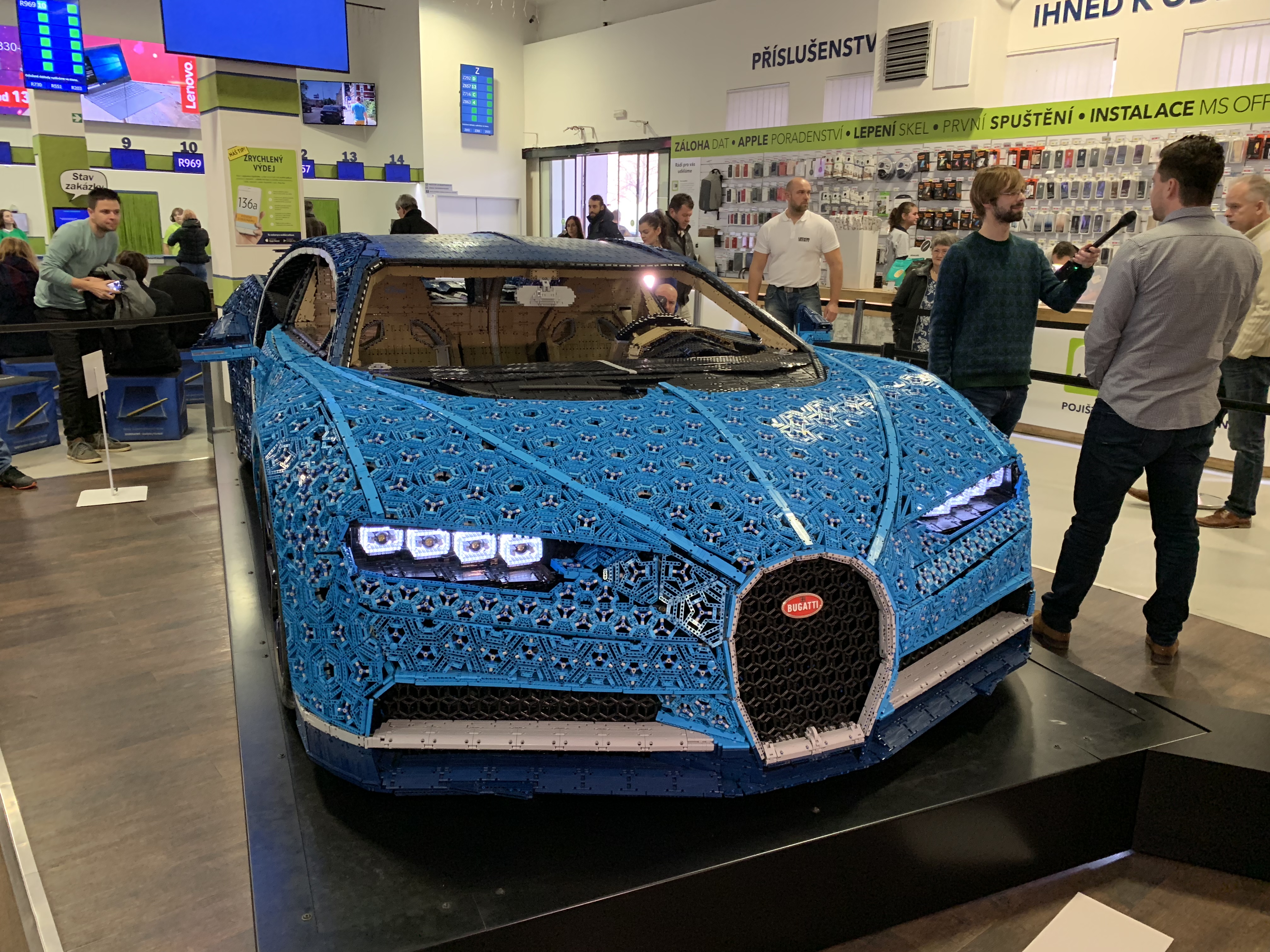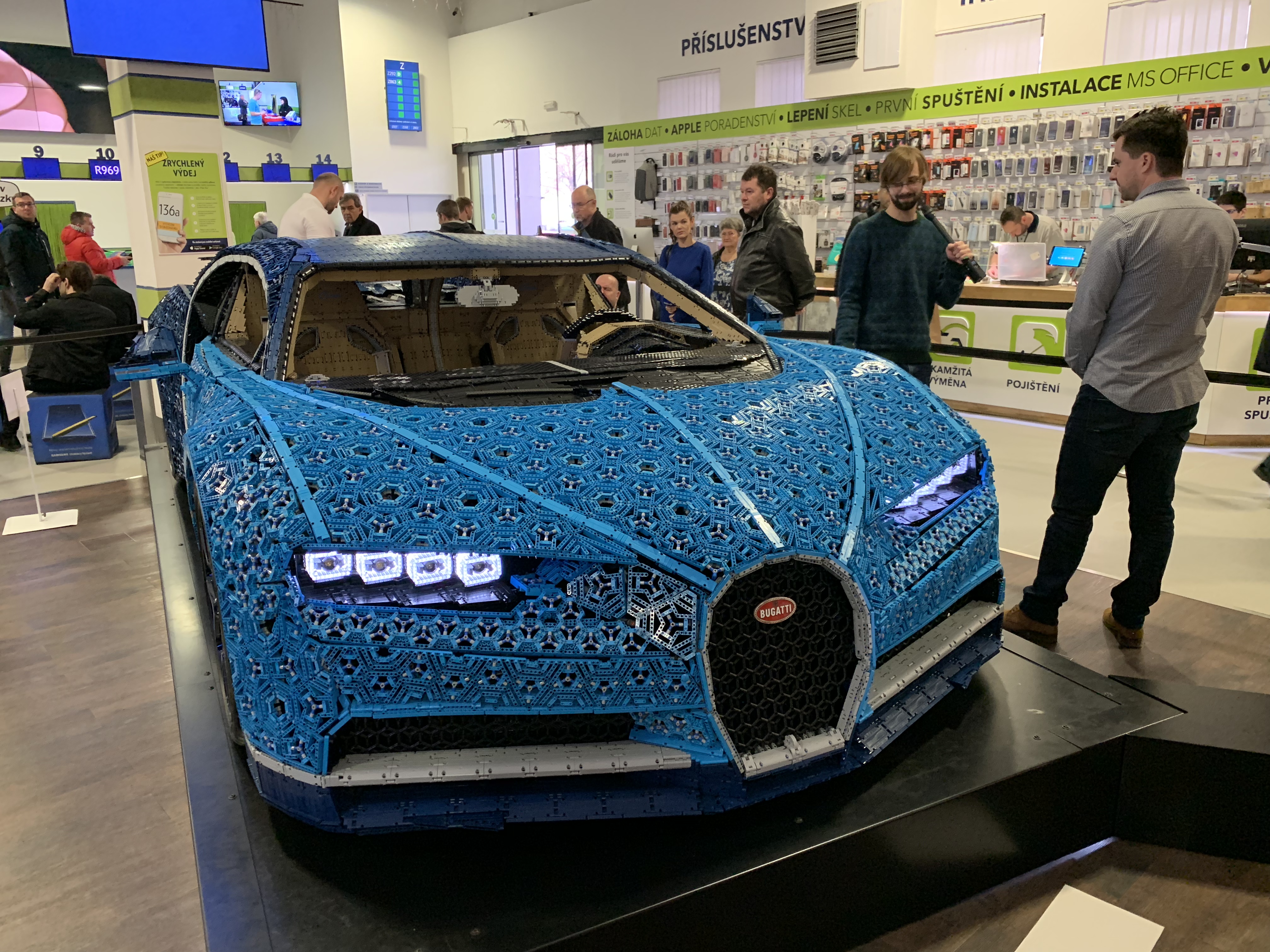 Na tomto modeli auta z Lega v životnej veľkosti v pomerne dobre osvetlenom interiéri sú obidve fotky plné detailov. Na prednom spojleri zo svetlo sivých kociek vidno, že s určením farebnej teploty a vyvážením bielej farby si lepšie poradil iPhone XR.