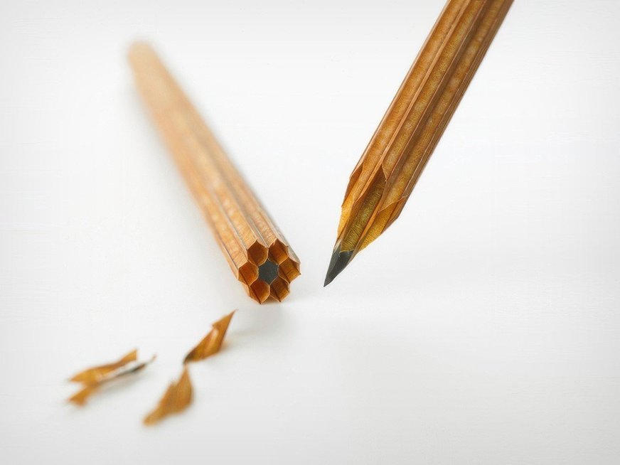 Z materiálového hľadiska je to neefektívne, pretože väčšina dreva je len pevnou výplňou. Kambara tento koncept dekonštruoval. Grafitová tuha je pevne držaná na mieste okolitou voštinovou štruktúrou, zatiaľ čo vonkajšie steny šesťhranných trubičiek poskytujú pohodlný úchop. Vytvorením dutých priestorov sa eliminuje nepotrebný „výplňový“ materiál, pričom obe základné funkcie zostávajú zachované.