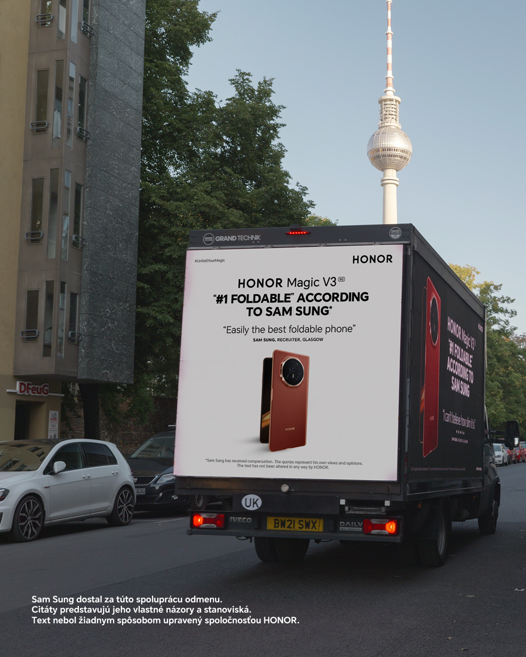 „Chceli sme sa trochu zabaviť a zároveň predstaviť neuveriteľné vlastnosti HONOR Magic V3,“ povedal Avikar Jolly, CMO spoločnosti HONOR EUROPE. „Čo môže byť lepšie, ako keď nám Sam Sung dáva spätnú väzbu? Recenzie hovoria samy za seba – HONOR Magic V3 mení pravidlá hry.“