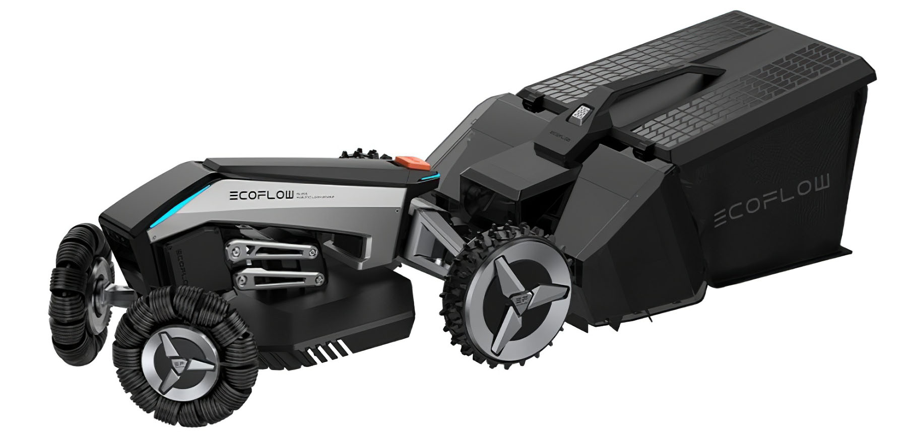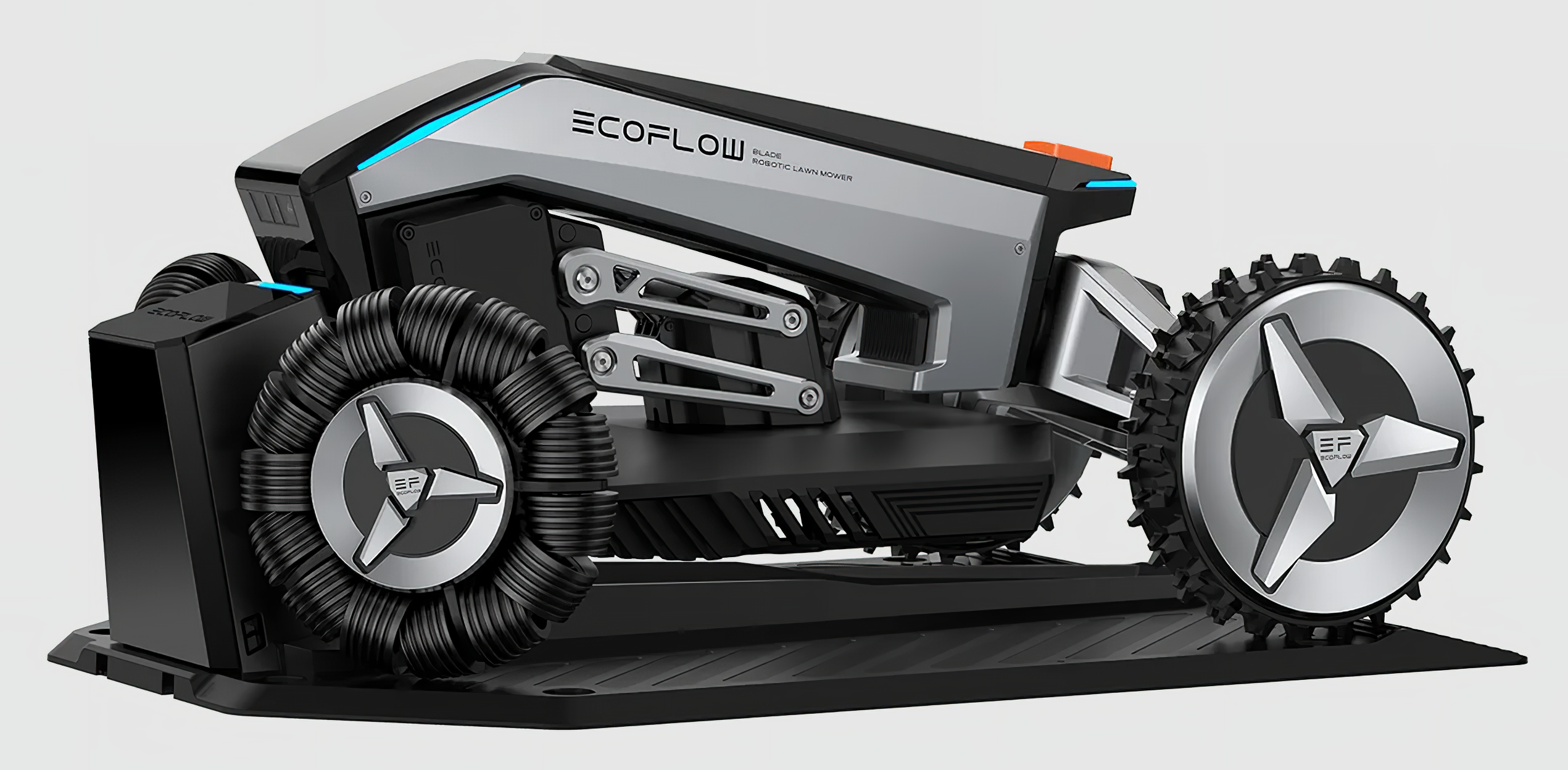 Novú robotickú kosačku BLADE od spoločnosti EcoFlow určite spoznáte na prvý pohľad podľa vzhľadu pripomínajúceho skôr Transformera. Ako je pri EcoFlow zvykom, aj BLADE využíva množstvo zaujímavých a neortodoxných riešení, ktoré inde nenájdete. Hneď na prvý pohľad si všimnete dvojicu predných kolies prichytených napevno asi pod 45° uhlom oproti smeru pohybu. Ide o všesmerové kolesá, po obvode sú tvorené voľne otočnými krúžkami, takže okrem klasického odvaľovania umožňujú aj pohyb bokom. Zadné kolesá sú nezávisle poháňané dvojicou elektromotorov priamo v nich, čo umožňuje bezproblémové riadenie kosačky. Vďaka pomerne veľkému priemeru predných kolies má zariadenie aj dobrú priestupnosť terénom. Nosná časť trupu pripomína konštrukciou traktor a pod ňou je na motoricky ovládanom závese celá kosačka s motorom. Tá má vďaka tomu nastaviteľnú výšku kosenia.