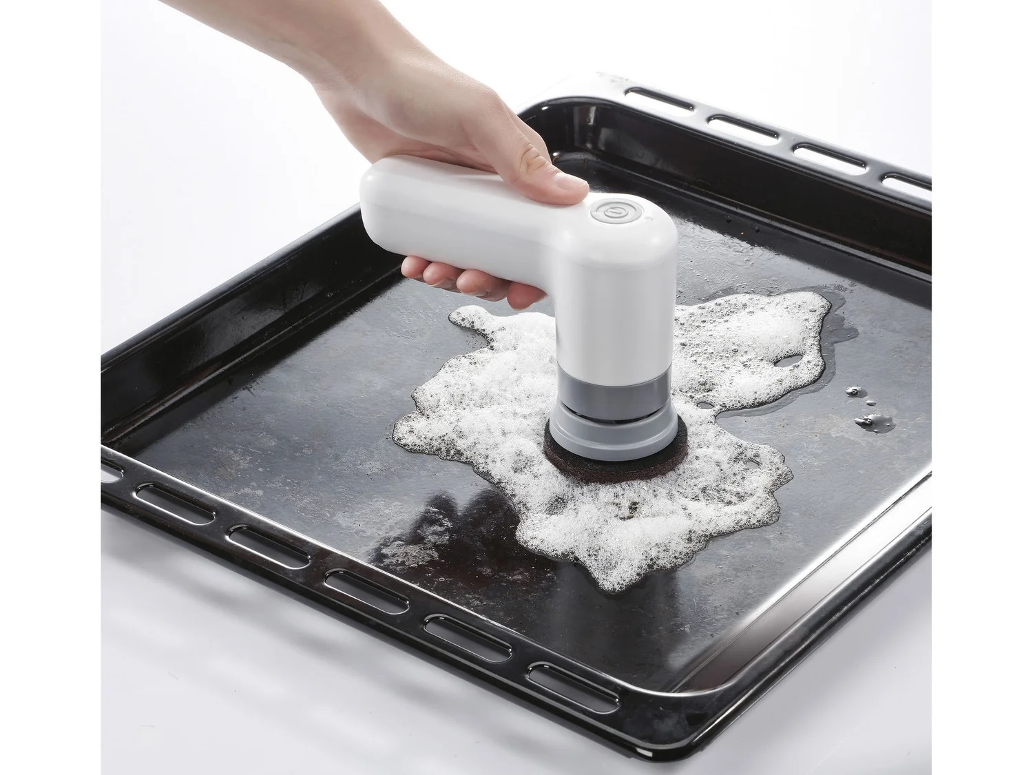 Univerzálna elektrická kefa vydrží na jedno nabitie fungovať približne hodinu, samozrejme, závisí to od spôsobu používania, hlavne prítlaku. Je to perfektný nástroj na jednoduché a pohodlné odstránenie zatvrdnutých nečistôt, napríklad zo dna hrncov, panvíc, plechov na pečenie so zaschnutými či prihorenými zvyškami jedla, vodovodných batérií, vnútrajška mikrovlnných aj klasických rúr a podobne. Teleso kefy s batériou a motorom má deklarovanú odolnosť proti vode IPX5, takže je vhodná aj na mokré čistenie. Kefy sa otáčajú rýchlosťou 215 otáčok/min. V balení nájdete malý aj veľký kefový nadstavec, špongie rôznych vlastností a držiaky na špongiu, ako aj kábel USB-C na nabíjanie. Nabíjačka nie je súčasťou balenia.