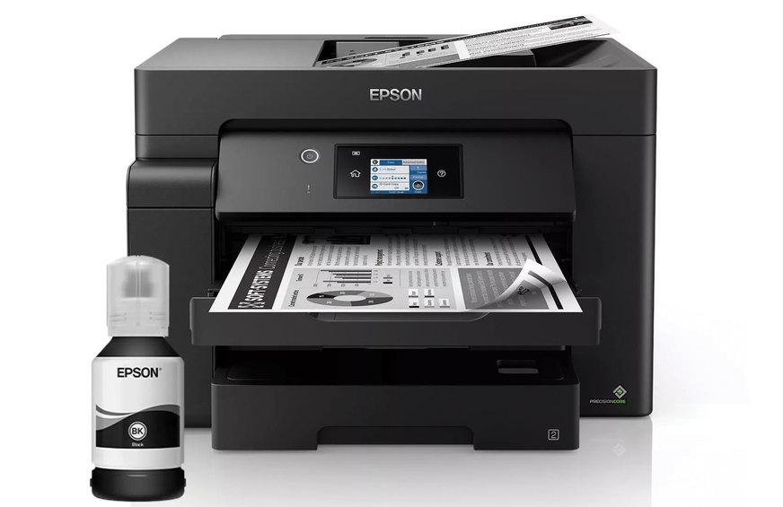 Ovládanie pomocou 6,8 cm dotykového LCD displeja je jednoduché a prehľadné. Vďaka technológii Wi-Fi Direct a aplikácii Epson iPrint môžete posielať dokumenty na tlač aj z mobilných zariadení. Epson Business EcoTank M15140 umožňuje čiernobielu tlač, skenovanie aj kopírovanie až do formátu A3. Vďaka obojstrannej tlači a automatickému podávaču dokumentov je tento model vhodný predovšetkým pre domáce kancelárie a firmy. Rýchlosť tlače je až 25 strán za minútu, pričom prvá strana je vytlačená už za 5,5 sekundy. Výtlačky sú vďaka rýchlo schnúcemu pigmentovému atramentu odolné proti rozmazaniu a aj proti svetlu. Tlačiareň má dva predné zásobníky na 250 listov, zadný podávač na 50 listov a automatický podávač dokumentov na 50 listov. Všetky zásobníky a podávače umožňujú vložiť papiere a dokumenty formátu A3.