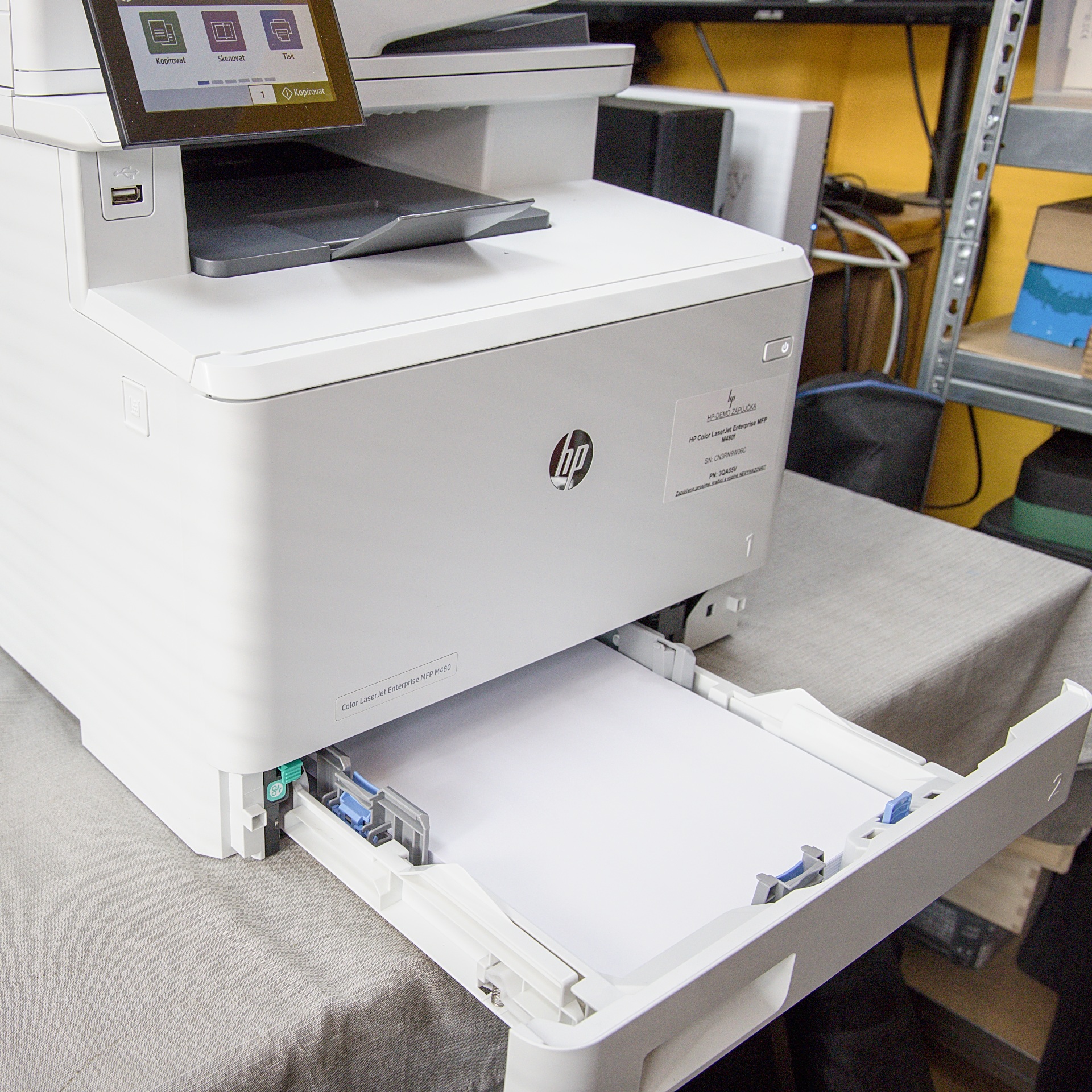 Multifunkčná tlačiareň je primárne určená pre firmy a organizácie ako model základnej úrovne, vhodný do kancelárie, pre menšie pracovné skupiny alebo pobočky do 10 ľudí. Maximálny mesačný objem tlače je 55 000 strán za mesiac, odporúčaný objem 4800 strán. Výrobca kládol dôraz nielen na rýchlosť a kvalitu tlače, ale aj na zabezpečenie. Na ovládanie slúži farebná dotyková obrazovka s uhlopriečkou 10,9 cm. Používateľské rozhranie je prehľadné a ovládanie všetkých funkcií je intuitívne. Tlačiareň priebežne informuje o stave tonerov v jednotlivých kazetách. Počítač môžete pripojiť cez USB, ale predpokladáme, že vo firmách sa bude využívať predovšetkým pripojenie cez Wi-Fi alebo eternet. Samozrejmosť je tlač, prípadne aktivovanie skenovania zo smartfónov a tabletov cez Wi-Fi Direct pomocou aplikácie HP Smart.