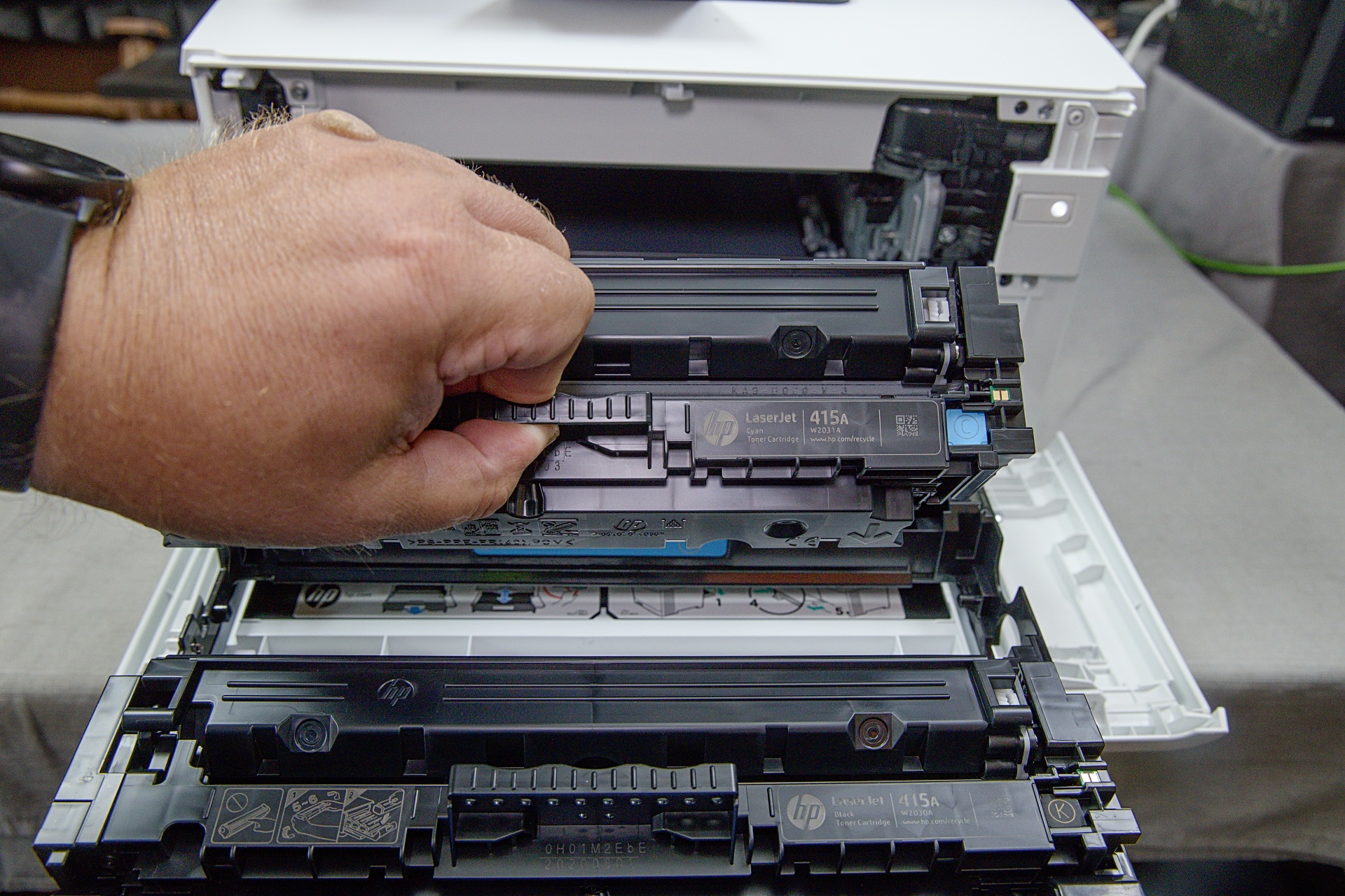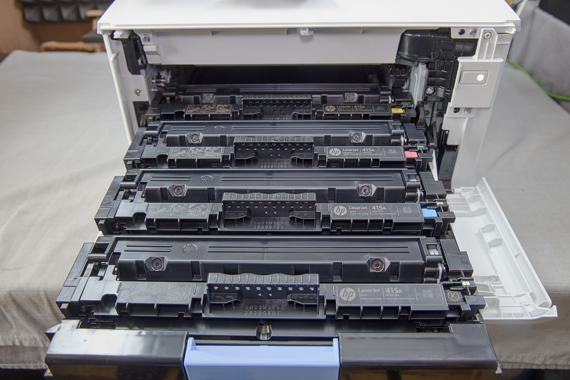 Cena čiernej tonerovej kazety HP 415A s výťažnosťou 2400 strán je 89 eur a cena každej z trojice farebných tonerových kaziet HP 416A (azúrová, purpurová, žltá) s výťažnosťou 2100 strán je 119 eur. V ponuke sú aj kazety série HP 415X, kde čierna kazeta s výťažnosťou 7500 strán stojí 179 eur a cena každej z farebných kaziet z výťažnosťou 6000 strán je 259 eur. Po prepočítaní jeden čiernobiely výtlačok s kazetou série A vychádza 3,70 centa a s väčšou kazetou série X na 2,30 centa. Cena za farebný výtlačok sa takto jednoducho spočítať nedá, veľmi zjednodušene, keby sa na tlač použili iba farebné tonery CMY (Cyan, Magenta, Yellow), v prípade série A by vytlačenie strany stálo 5,6 centa a v prípade tonerových kaziet série X 4,3 centa. Skutočná výťažnosť, a teda aj ceny za výtlačok sa, samozrejme, značne líšia v závislosti od tlačených obrázkov a ďalších faktorov.