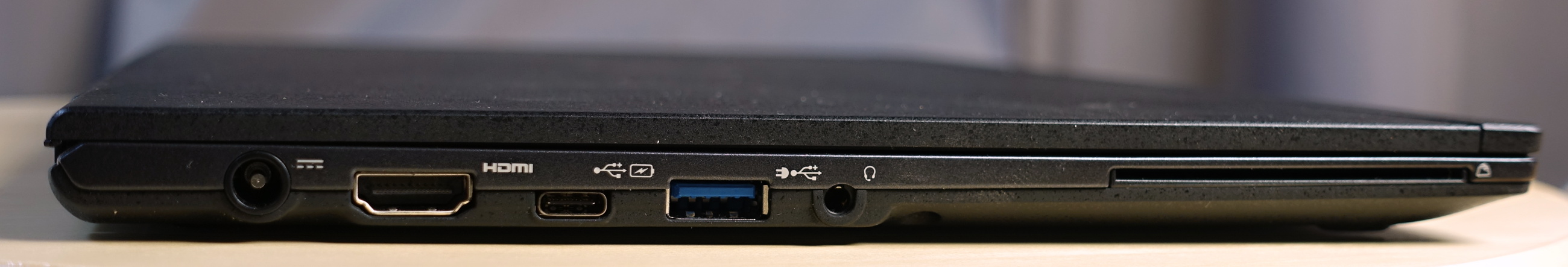 Konštruktéri tohto ultratenkého a veľmi ľahkého notebooku originálnym spôsobom vyriešili problém, ako používateľovi poskytnúť napriek malej hrúbke zariadenia čo najviac portov. Na bočných stenách nájdete dva porty USB 3.0, port USB-C, HDMI, port na slúchadlá a dokonca aj eternet. Túto zásuvku treba z tela notebooku vysunúť a rozložiť. Pozitívne hodnotím, že „veľké“ porty USB sú každý na inej strane, takže do nich môžete zasunúť aj širšie zariadenia, napríklad USB kľúče. To však nie je zďaleka všetko. Súčasťou balenia je navyše aj rozširujúci modul, ktorý sa k ultrabooku pripojí cez obojstranný kábel USB-C a používateľ má k dispozícii ďalšie dva porty USB 3.0, jeden z nich nabíja pripojené zariadenia aj pri vypnutom notebooku, port USB-C, eternetový konektor a tri konektory na pripojenie zobrazovacích zariadení: HDMI, DisplayPort a VGA. Modul má samostatný napájací zdroj, takže zariadenia pripojené na porty USB budú mať dostatok energie a budú sa môcť nabíjať aj vtedy, keď notebook bude v režime spánku či hibernácie.