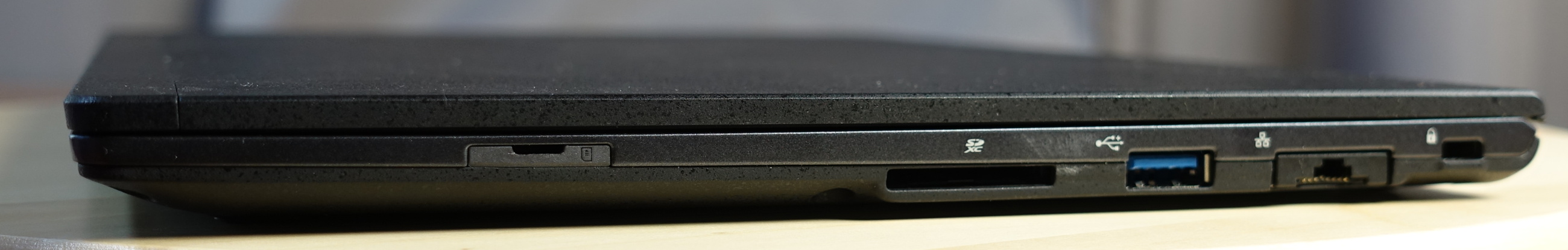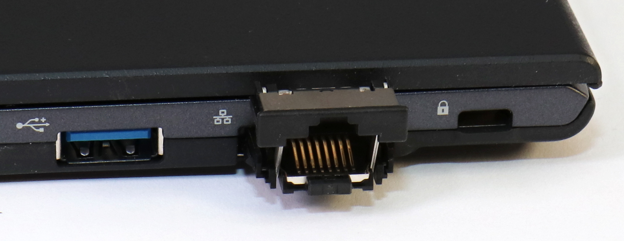 Porty na pravej strane, všimnite si eternetový konektor v zasunutej polohe