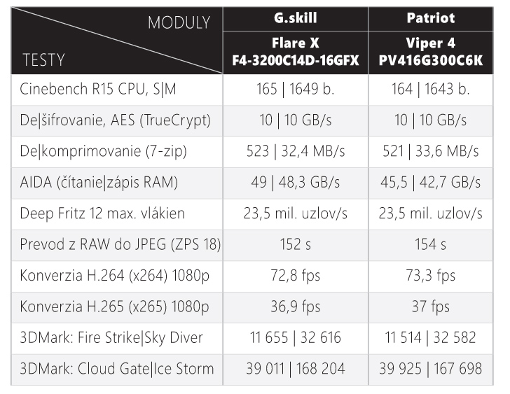 Test rýchlych pamätí DDR4: G.Skill Flare X a Patriot Viper 4