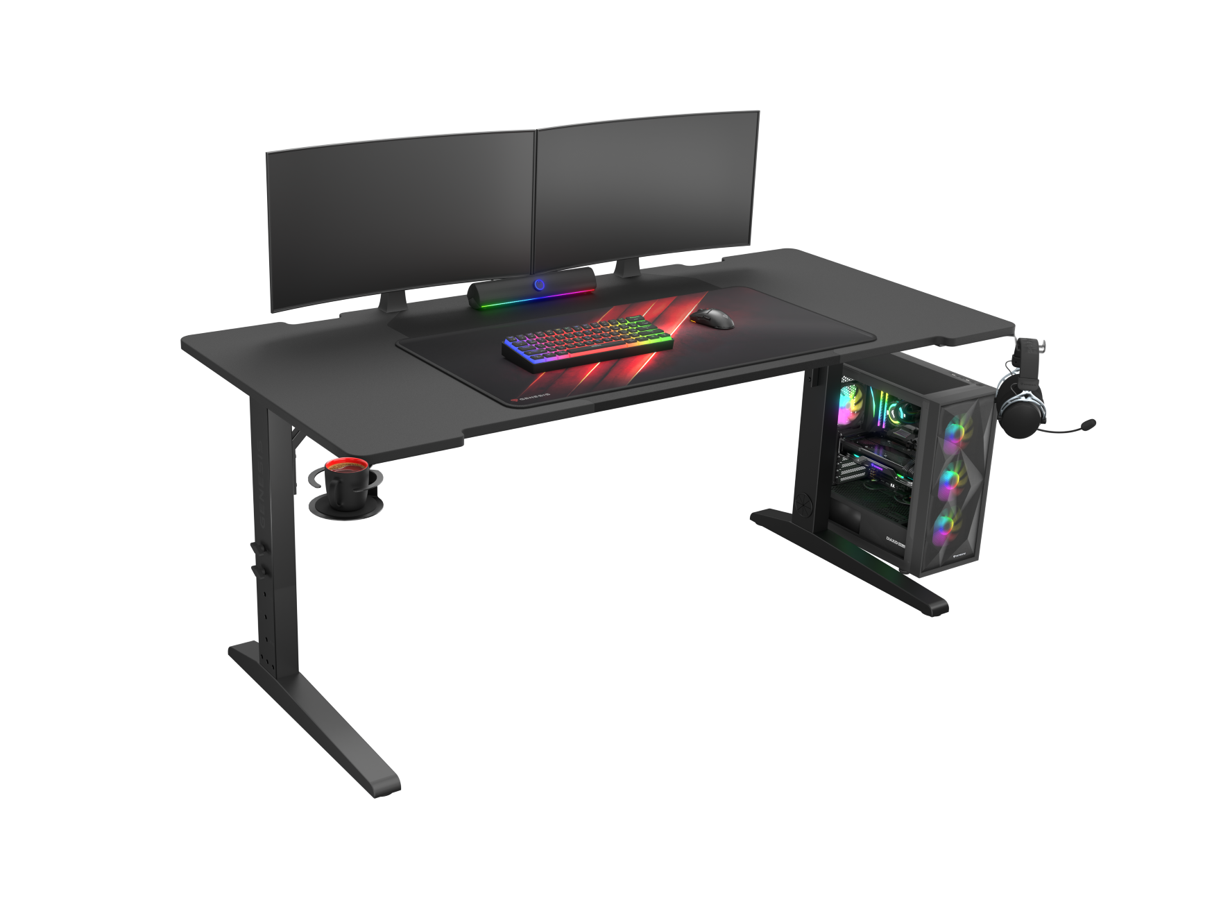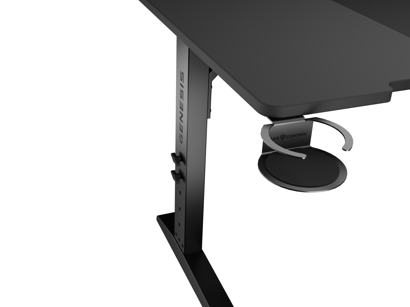 Stôl GENESIS Holm Modular je vybavený množstvom funkčných doplnkov, ako je držiak na poháre, slúchadlá, priechodka na káble umiestnená v ráme a dokonca aj výsuvná polica na káble v rozsahu 50 - 95 cm. Estetickým prvkom je aj kvalitný LED pásik. Inštalované osvetlenie vďaka svojmu charakteristickému dizajnu lepšie rozptyľuje svetlo a je možné plne nastaviť jeho uhol alebo ho úplne odstrániť a umiestniť na iné miesto.