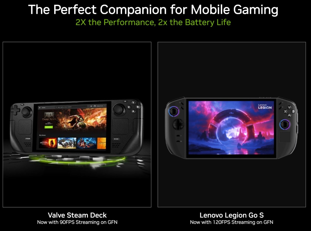 Rozširuje sa aj zoznam podporovaných zariadení. Teraz zahŕňa závodné volanty, až 90 fps na Steam Decku alebo 4K pri 120 Hz na podporovaných televízoroch LG. Monitory a televízory LG patria medzi prvé, ktoré ťažia z vylepšenia serverov GeForce NOW na RTX 5080. Podporované monitory LG OLED môžu streamovať v ultra vysokom rozlíšení 5K (5120×2880), pokiaľ sú pripojené k zariadeniam so systémom Windows alebo MacOS bez nutnosti ďalšieho hardvéru. Televízory LG sú tiež priekopníkmi ako prvé na svete, ktoré streamujú 4K pri 120 Hz s HDR prostredníctvom natívnej aplikácie priamo na podporovaných televízoroch LG.