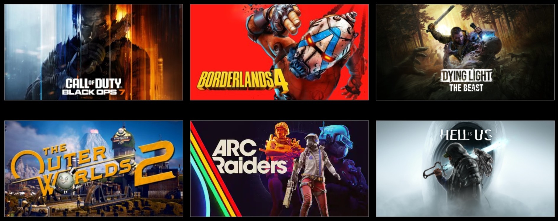 Hráči sa tiež môžu tešiť na návrat obľúbeného sci-fi RPG Outer Worlds 2 od Obsidian Entertainment, sci-fi akciu Arc Raiders od Embark Studio aj vysoko očakávaný titul Vampire: The Masquerade - Bloodlines 2 od Paradox Interactive a White Wolf. Call of Duty: Black Ops 7 od Activision sa tiež pripojí k cloudu v deň vydania a rovnako tak sci-fi strieľačka z pohľadu tretej osoby CINDER CITY od BigFire Games a NCSoft.