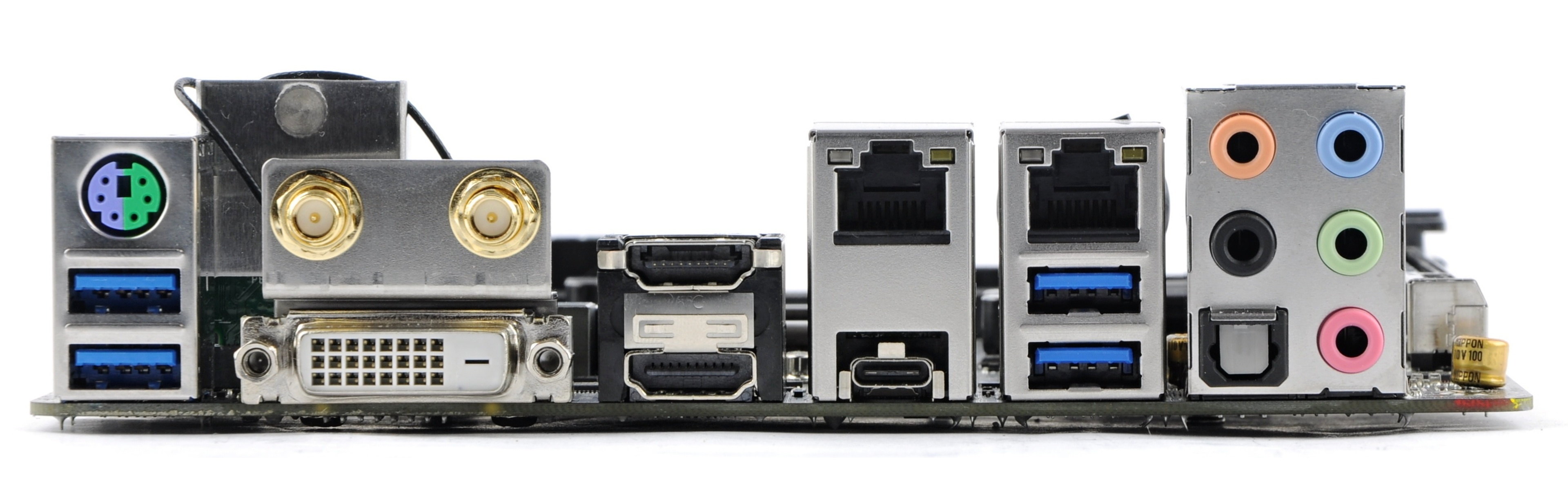 Portov USB je tak akurát, štyri 3.1 gen 1 typu A, jeden typu C. Audio nijako nevybočuje a tak ako vo väčšine prípadov stojí na čipe Realtek ALC1220. Zvláštnosťou je 2× HDMI, viac obrazových výstupov sa určite hodí, vedzte však, že ide o štandard 1.4, čo je obmedzenie plynúce priamo z integrovaného grafického jadra, z ktorého dostanete 4K iba pri 30 Hz. Preto nám chýba DisplayPort. S ním by to s použitím prevodníka HDMI 2.0 bola uchádzajúca doska aj do HTPC k televízorom s UHD. Takto ňou môže byť takisto, ale budete potrebovať samostatnú grafiku.