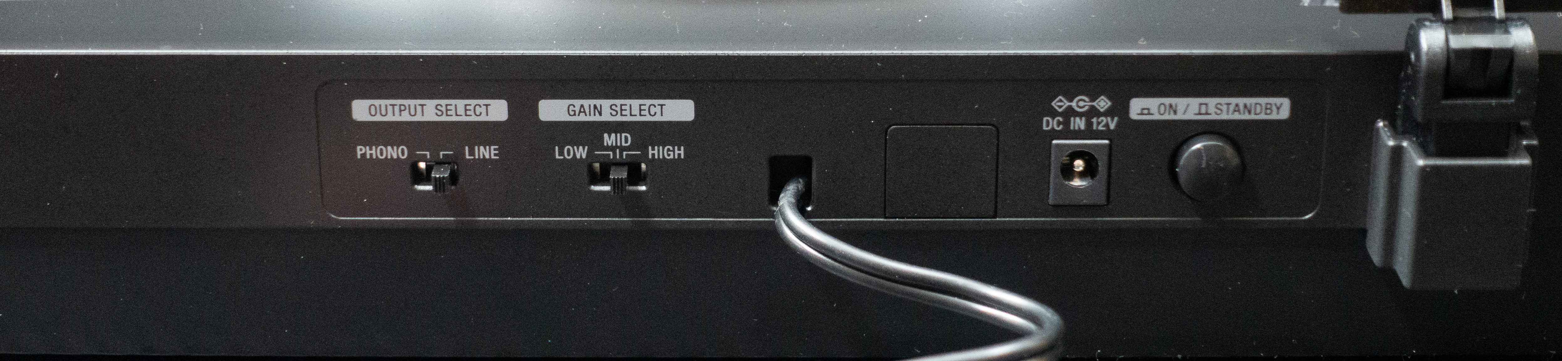 Gramofón môžete k pripojiť k zosilňovaču pomocou kábla s dvojicou RCA (Cinch) konektorov. Jedna strana kábla je pevne pripojená ku gramofónu. Na zadnej stene je veľmi dôležitý prepínač Phono / Line, ktorým sa zapína, prípadne vypína korekčný predzosilňovač v gramofóne. To si znovu žiada vysvetlenie. Zvukový záznam sníma prenoska pomocou ihly, ktorá sa relatívnym pohybom v drážke rozkmitá. Chvenie sa z hrotu prenáša na sústavu magentodynamických snímačov. Pre záznam najnižších kmitočtov by však drážka musela byť veľmi široká, preto sa zvukový záznam na platni upravuje tak, že sú zdôraznené výšky a potlačené basy. Táto korekcia je nelineárna a definuje ju krivka podľa normy RIAA. Pri prehrávaní sa preto musí uplatniť opačná korekcia na zdôraznenie nižších frekvencií. Tento korekčný predzosilňovač môže byť v gramofóne, alebo koncovom zosilňovači. Ak pripájate gramofón k niektorému z bežných vstupov zosilňovača ako je CD, Tuner, či Line, je potrebné mať prepínač v polohe Line. Vtedy sa uplatní korekčný predzosilňovač v gramofóne. Kvalitné stereo zosilňovače však majú korekčný predzosilňovač zabudovaný a takmer vždy je kvalitnejší, než predzosilňovač v gramofóne. Vtedy na gramofóne prepnite prepínač do polohy Phono, a gramofón pripojte na vstup Phono zosilňovača. Vtedy sa predzosilňovač v gramofóne neuplatní a na výstupe bude signál priamo z prenosky. Druhý prepínač Gain umožní nastaviť zosilnenie signálu na výstupe v troch stupňoch.
