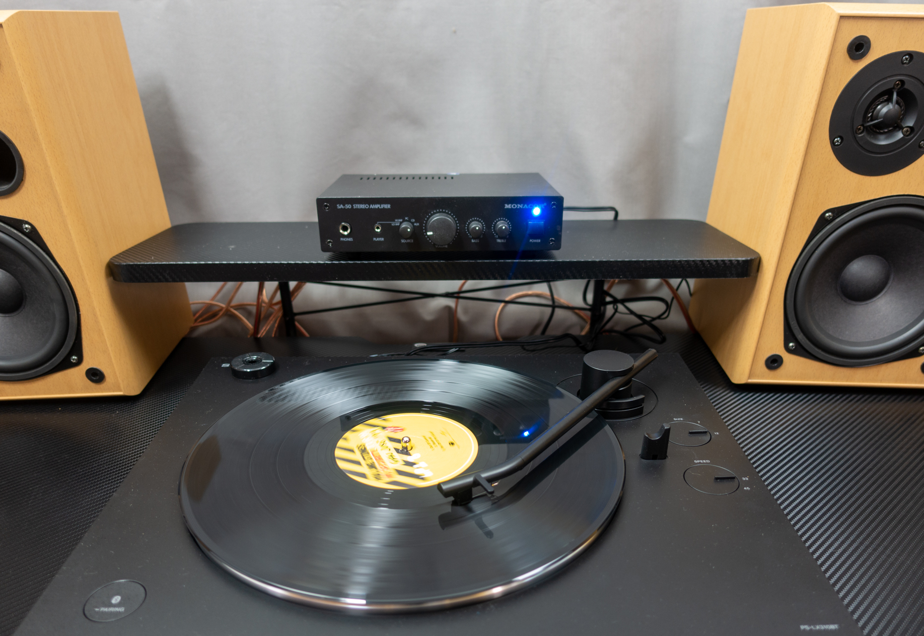 Gramofón som testoval s rôznymi zosilňovačmi a reproduktormi. Už zostava bežného nf zosilňovača Monacor s dvojpásmovými reproduktormi AQ Toba poskytovala vynikajúci a brilantný zvuk.