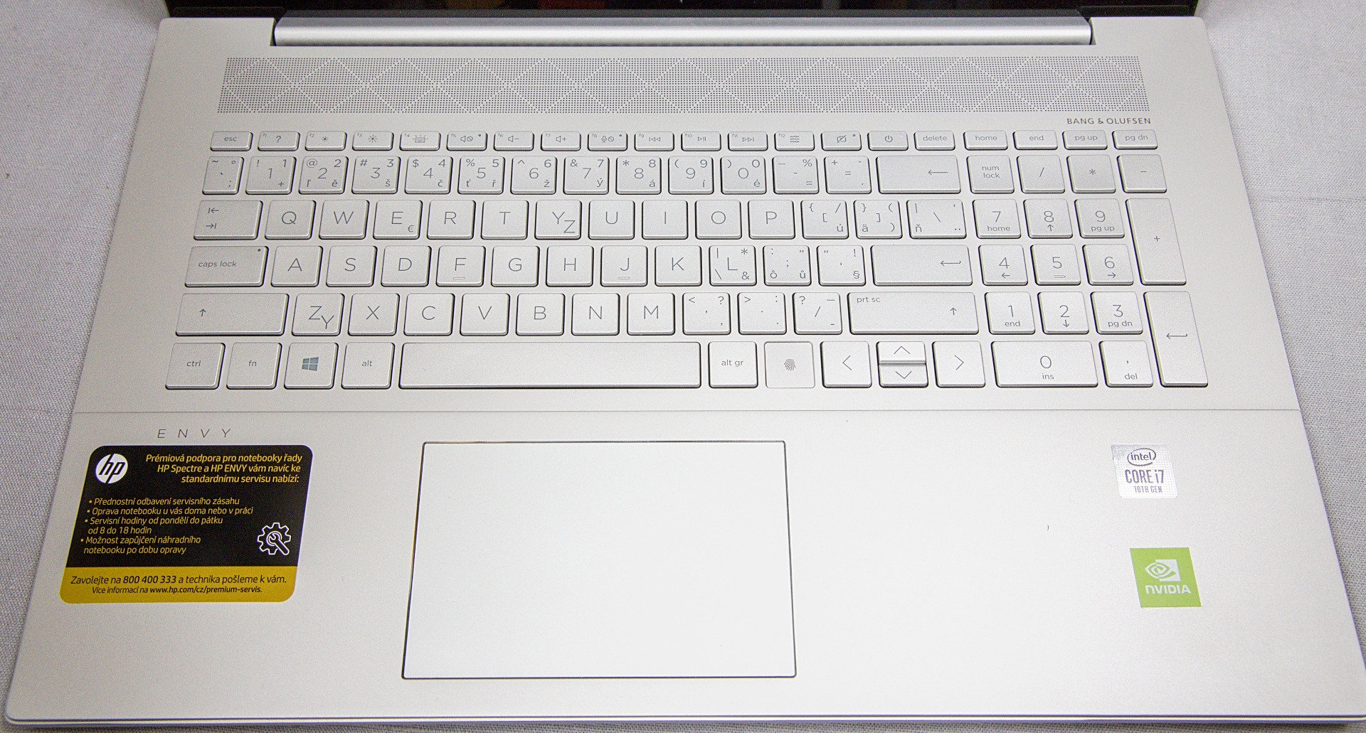 Procesor Intel Core i7 desiatej generácie dokáže v režime Turbo krátkodobo zvýšiť taktovaciu frekvenciu jedného jadra až na 3,9 GHz, no len v intenciách možností chladenia. Väčšie telo notebooku lepšie odvádza teplo, ale príkon takto pretaktovaného procesora atakuje 40 W, takže režim Turbo sa dá využiť len krátkodobo. Treba si uvedomiť, že HP ENVY 17 nie je herný počítač. Dedikovaný grafický čip NVIDIA GeForce MX330 so 4 GB GDDR5 VRAM využijete v menej náročných hrách, pri renderovaní videa či podobných grafických aplikáciách. Skúšal som si zahrať Zaklínača 3 a Age of Empires 3 a s plynulosťou týchto hier som bol spokojný. Reproduktory sú za klávesnicou nasmerované nahor a zvuk je pomerne dobrý, a to aj v oblasti nižších frekvencií.