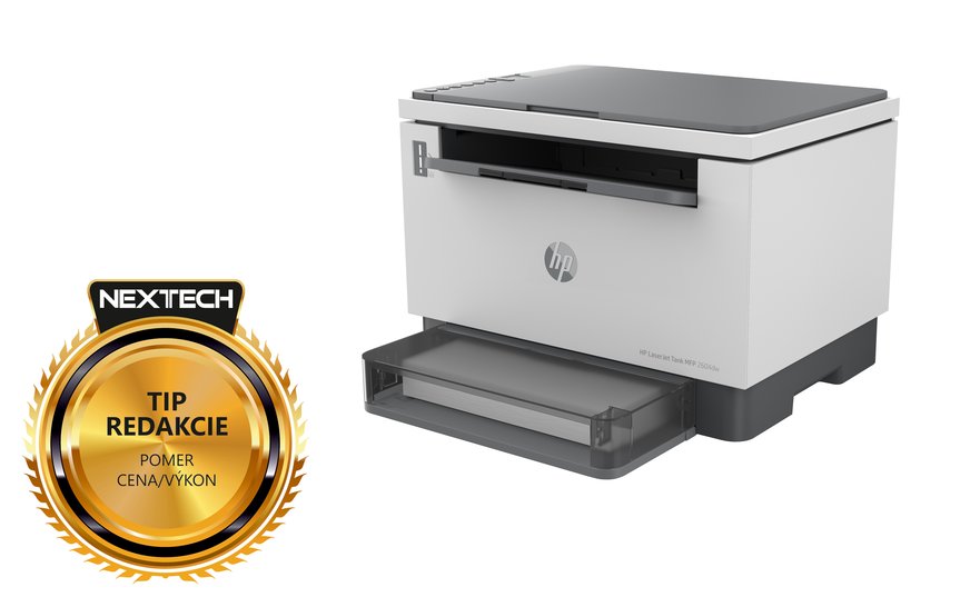 Systém LaserJet Tank využíva aj testovaná novinka, multifunkčné zariadenie HP LaserJet Tank MFP 2604dw. Ide o riešenie 3 v 1, ktoré zahŕňa funkcie tlačiarne, skenera a kopírky. Čiernobiela laserová tlačiareň pracuje s rozlíšením 600 × 400 dpi a umožňuje automatickú obojstrannú tlač. V spodnej časti má zásobník na 250 listov A4 alebo 10 obálok. Tu je trocha škoda, že zásobník je iba jeden, takže ak chcete tlačiť na iný formát alebo médium, musíte ich v zásobníku vymeniť. Tlač prebieha rýchlosťou 22 strán/min. Nie je to žiadny rýchlik, ale vzhľadom na cielenie tlačiarne bohato postačí. Farebný skener pracuje s rozlíšením 600 dpi a umožňuje skenovať predlohy s maximálnymi rozmermi 216 × 297 mm. Skener je jednoduchý, bez duplexnej jednotky. Vo funkcii kopírky dokáže zariadenie kopírovať obojstranne, aj keď predlohy musíte otáčať ručne, a je tu aj špeciálny režim na skenovanie dokladov. Ten umožňuje postupne skopírovať obe strany dokladu a vytlačí ich pod seba na jeden papier. Veľmi zaujímavá funkcia, ktorá má veľké uplatnenie práve v rôznych inštitúciách a firmách.