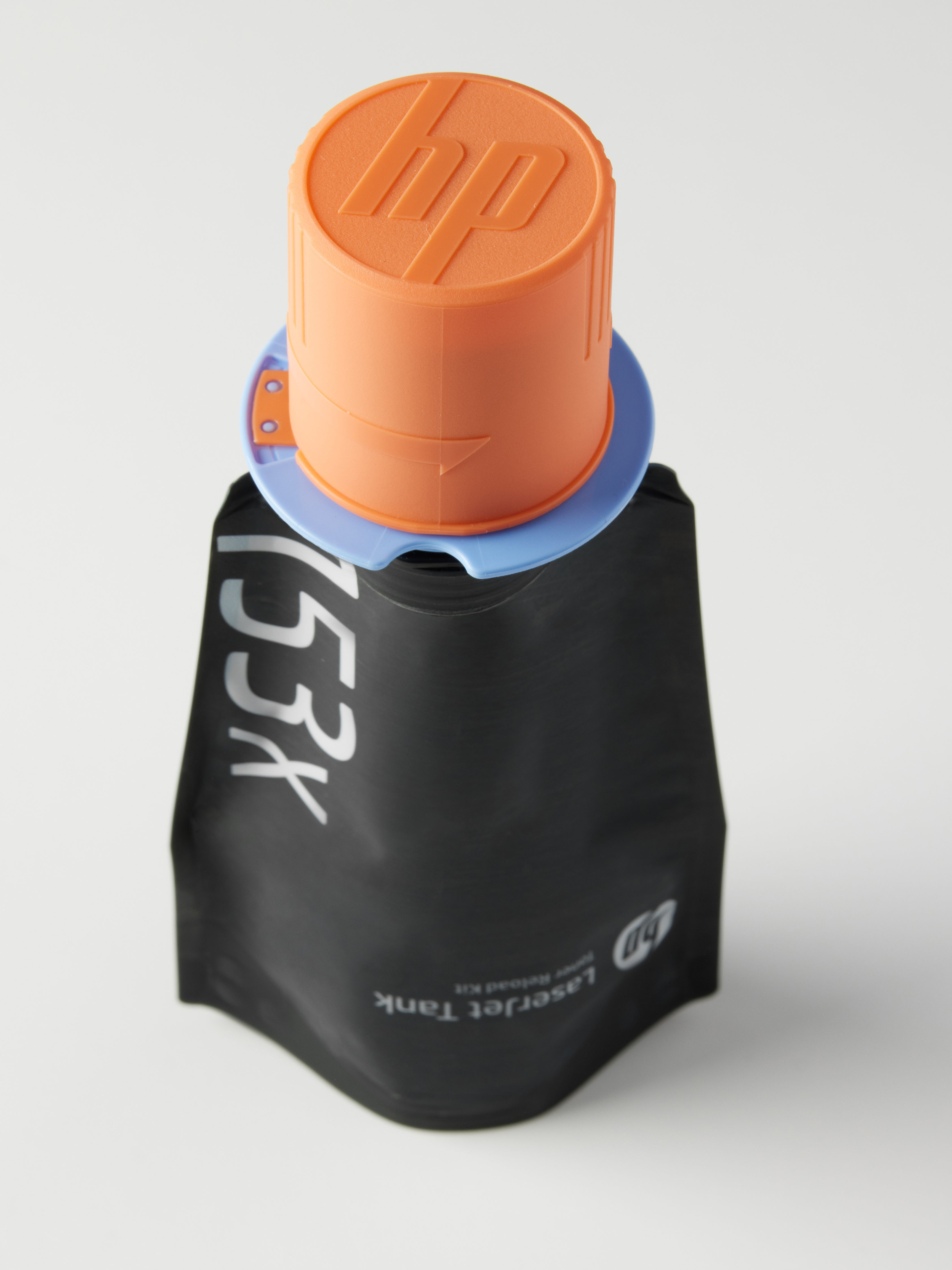 To však hlavne vo firemnom a inštitucionálnom prostredí, kde sú pomerne veľké objemy tlače, produkuje aj veľké množstvo odpadu a nie vždy je dobrým riešením recyklácia kaziet. Spoločnosť HP preto už pred časom prišla s elegantnejším riešením nazvaným LaserJet Tank. Princíp je v podstate rovnaký, aký poznáme z tankových tlačiarní InkJet. Ide o to, že keď vám dôjde toner, kazeta sa nevymieňa, ale iba dopĺňa pomocou špeciálnych vreciek. Keďže toner do laserových tlačiarní nie je tekutý, ale práškový, je vrecko vybavené špeciálnym hrdlom so vzduchotesným bajonetovým uzáverom, ktorý sa nasunie na protikus v tlačiarni a potiahnutím páčky sa toner presype do tlačiarne. Celý proces je rýchly a čistý a nehrozí, že by ste sa pri ňom zašpinili. Veľká výhoda tohto systému je v tom, že množstvo odpadu je minimalizované a vo firmách s väčším počtom tlačiarní sa významne šetrí miesto na skladovanie náhradných náplní.