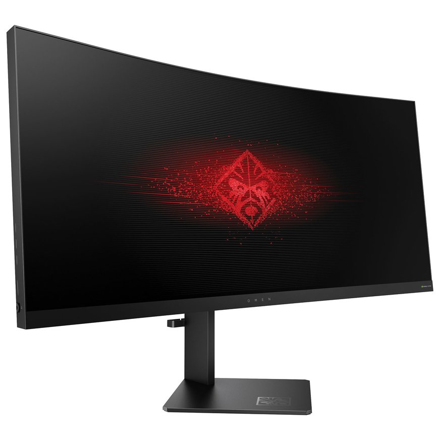 Novinka radu Omen má uhlopriečkou 35", panel typu AMVA a ultraširoké vyhotovenie. Základňa, na ktorej monitor stojí, je veľmi stabilná a stojan umožňuje natáčanie zobrazovacieho panela aj podľa horizontálnej osi. Výškovo má pritom rozsah do 13 cm, čo by malo stačiť každému. Základňu s logom Omen skrášľuje ambientné osvetlenie, ktoré sa môže riadiť niektorým zo stanovených prednastavených profilov. Najzaujímavejšie je však nastavenie, ktoré sfarbenie podsvietenia mení podľa farebného naladenia scény odohrávajúcej sa na obrazovke.