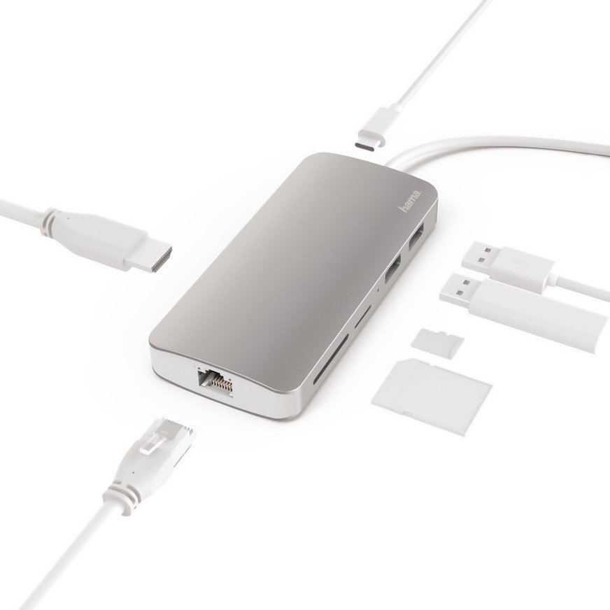 Moderné ultrabooky sú konštrukčne riešené s ohľadom na minimálnu hrúbku , takže mnohé z nich majú len dva, prípadne iba jeden USB-C port. Ten je určený nielen na pripojenie periférií, ale aj monitora, či projektora a dokonca aj na napájanie a nabíjanie prístroja. Používatelia ultrabookov a Macbookov preto často riešia dilemu, ako pripojiť viac zariadení, prípadne ak sú na nejakej prezentácii u zákazníka ako sa pripojiť k projektoru. Jedným z riešení je dokovacia stanica typu 7 v \1 Hama. Je malá a vďaka telu z pieskovaného hliníka pôsobí elegantne. K ultrabooku sa pripája cez pevne pripojený káblik s USB-C konektorom. Používateľ má k dispozícii dva porty USB 3.1 s konektormi typu A, USB-C port s podporou štandardu Power Delivery, HDMI konektor na pripojenie monitora, televízora, alebo projektora s maximálnym podporovaným rozlíšením 4K, dva sloty na pamäťové karty SD/SDHC/SDXC a microSD a taktiež Ethernet konektor RJ-45 na pripojenie k sieti LAN rýchlosťou až 1000 Mb/s. K dokovacej stanici môžete pripojiť aj 5V napájací adaptér, ktorý nie je súčasťou balenia. Oveľa praktickejšie je pripojiť napájací adaptér z ultrabooku cez USB-C konektor, potom sa budú napájať nielen pripojené zariadenia, ale aj ultrabook. Aby ste mohli pripojiť zobrazovacie zariadenie cez HDMI konektor, musí USB-C port na vašom ultrabooku podporovať Thunerbolt 3, alebo mód DisplayPort.