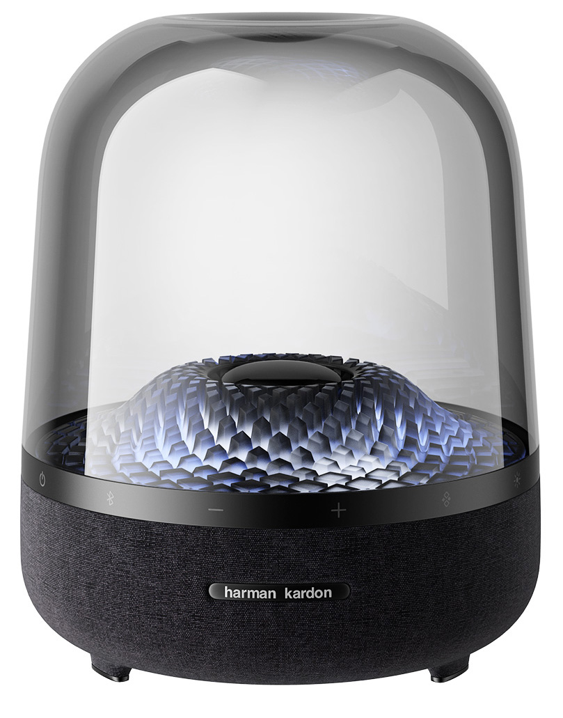 Model: Harman Kardon Aura Studio 4, meniče: 6 ks 40 mm (stredový), 1 ks 130 mm (subwoofer), bluetooth 4.2, A2DP V1.3, AVRCP V1.6, vstup audio 3,5 mm jack, napájanie vstavané 230 V, menovitý výkon: 2 × 15 W + 1 × 100 W (RMS), frekvenčný rozsah: 45 Hz – 20 kHz, odstup SŠ 80 dB, rozmery (š × v × h): 283,6 × 232 × 232 mm, hmotnosť: 3,6 kg