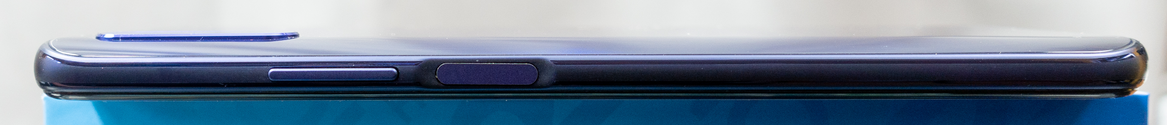 Kovový rám smartfónu má matnú povrchovú úpravu, čo priespieva k spoľahlivému držaniu Zadná sklenená stena poskytuje zaujímavý efekt lomu svetla, ktorý vytvára nenápadný vzor v tvare písmena X a varianty rôznych gradientov a odtieňov fialovej a tmavomodrej farby. Lesklý povrch kupodivu nie je až taký šmykľavý ako som očakával, napriek tomu odporúčam používať silikónové puzdro, ktoré nájdete v balení. Rozpoznanie odtlačku je veľmi rýchle a ak nemáte znečistené, či príliš nakrémované prsty tak aj spoľahlivé.