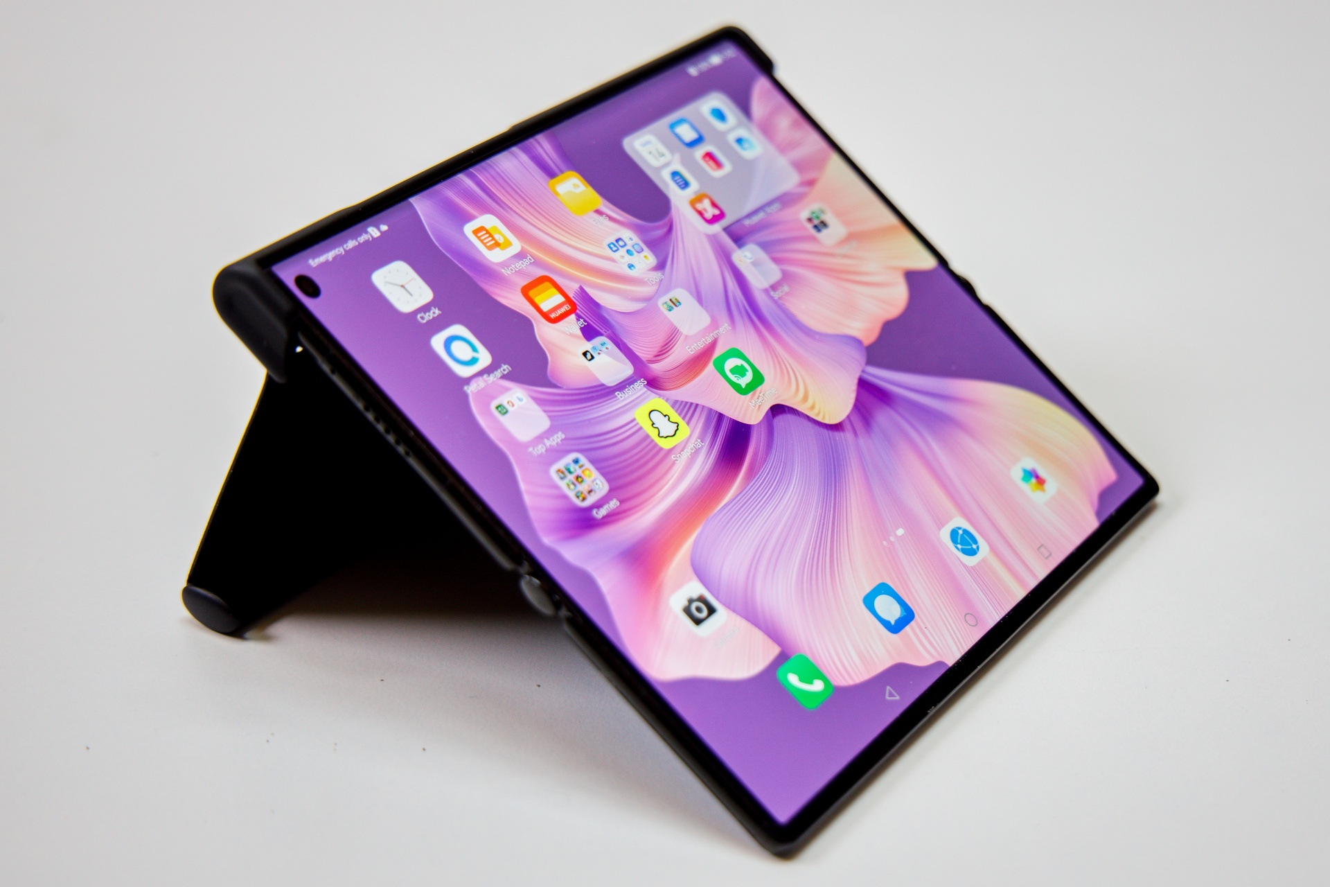 Po roztvorení má Mate Xs 2 hrúbku 5,4 mm s výnimkou hrubšej asi dva centimetre širokej časti s hrúbkou 1,11 mm, čo je zároveň hrúbka smartfónu v zloženom stave. V tejto časti sú umiestnené objektívy zadného fotoaparátu, USB-C konektor, mechanické tlačidlo ovládajúce západku, ktorá drží smartfón v zloženom stave a pravdepodobne aj väčšina elektroniky. Zadná strana rozloženého smartfónu má povrch s príjemnou textúrou. Pri postupnom roztváraní je približne do uhla 120˚ aktívna len predná časť displeja. Pokiaľ smartfón roztvoríte len čiastočne – približne do pravého uhla môžete ho používať v polohe „stan“, čo je praktické napríklad pri videohovoroch. Pribalený kryt umožňuje aj konfiguráciu stan s rozloženým displejom