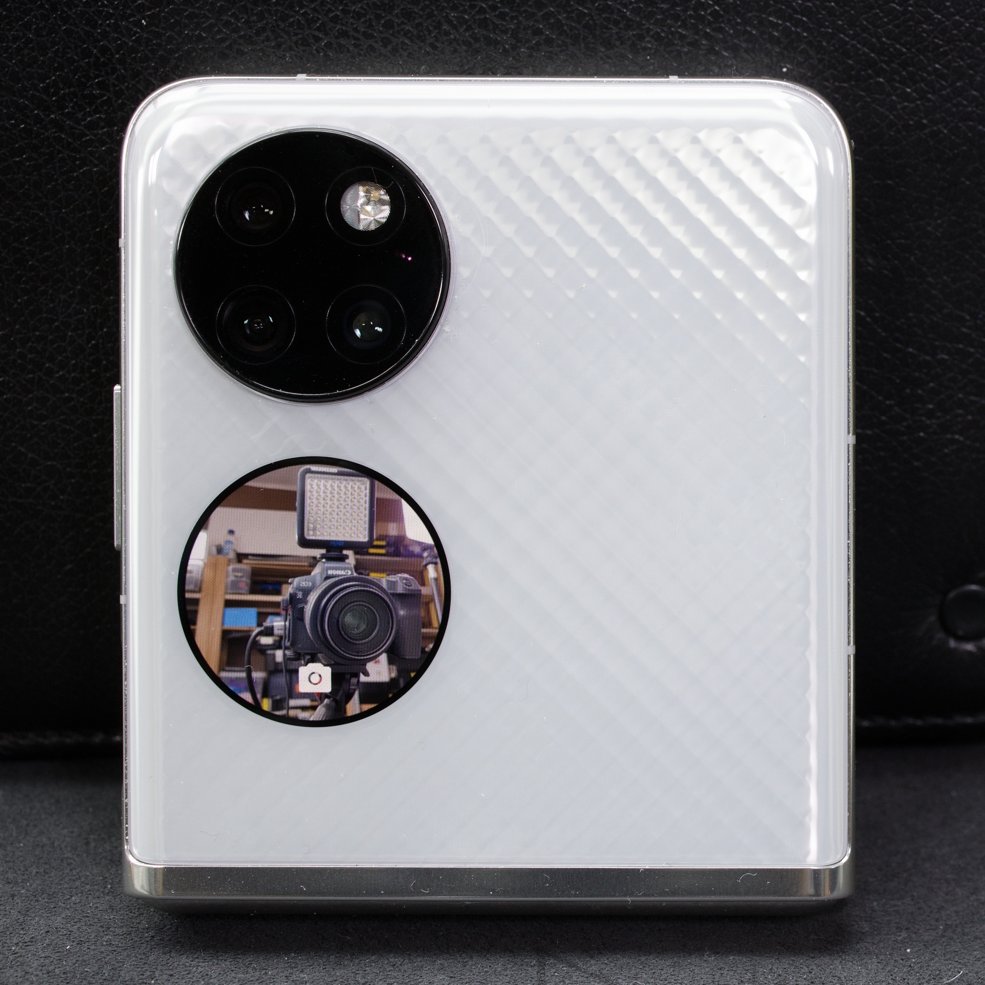 Vonkajší kruhový displej umožňuje zobrazovať čas, notifikácie, umožňuje ovládať prehrávanie hudby, prípadne poslúži ako už spomínané zrkadielko. Jeho najužitočnejšou funkciou je však náhľad fotografovanej scény, takže na selfie fotky a videá môžete využiť aj objektívy zadného fotoaparátu.