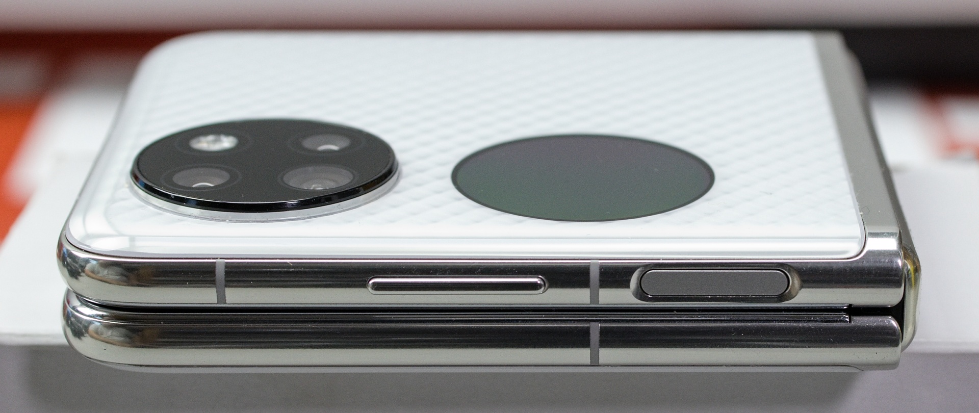 Dizajnéri aj konštruktéri si na tomto skladacom smartfóne dali mimoriadne záležať. Kombinácia perleťovo bielych povrchov s jemnou elegantnou mriežkovou priestorovou štruktúrou s rámom a krytom kĺbu z lesklého kovu navodzuje dojem luxusu. Navyše dizajnéri použili osvedčený princíp opakovania, v tomto prípade kruhov na zadnej strane. V jednom kruhu sú sústredené objektívy fotoaparátov spolu s LED a UV svetlom a druhý kruh je tvorený sekundárnym farebným displejom s priemerom 1.04 palcov a rozlíšením 340 x 340 pixelov.