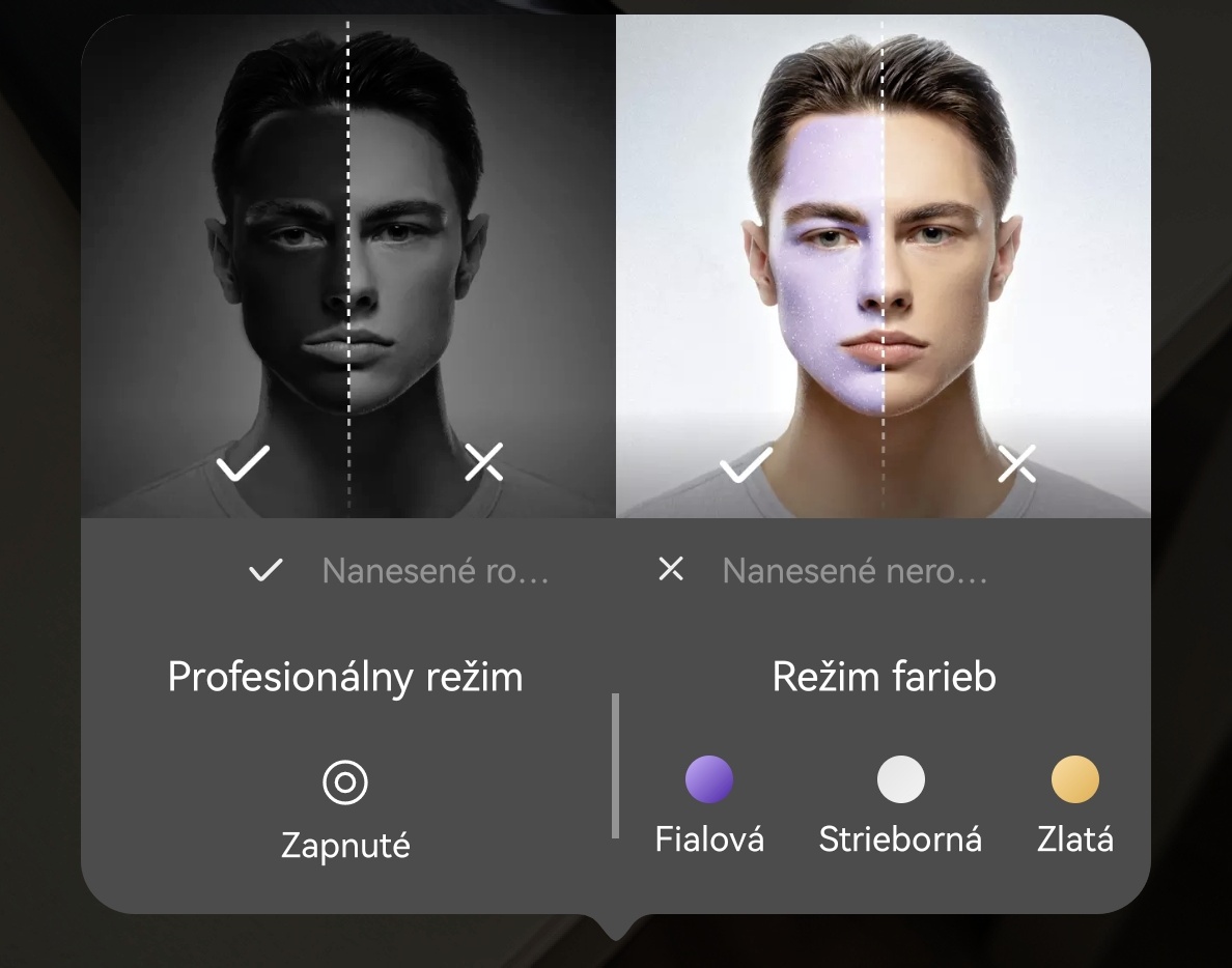 Popis fotoaparátov začnem trochu netradične UV svetlom. Využíva sa na už spomínanú funkciu kontroly rovnomernosti natretia tváre opaľovacím krémom. Pre túto funkciu je vyhradený samostatný fotoaparát, ktorého objektív má svetelnosť f/1.8 a za ním je špeciálny snímač s rozlíšením 32 megapixelov. Na nič iné sa momentálne tento fotoaparát použiť nedá, ale možno v niektorej aktualizácii firmvéru preň nájde ešte nejaké ďalšie zaujímavé využitie. UV svetlo však môžete využiť aj pri fotení hlavným fotoaparátom v režime Fluorescence. Môžete to vyskúšať napríklad na bankovkách, tento režim samozrejme funguje len v tme.