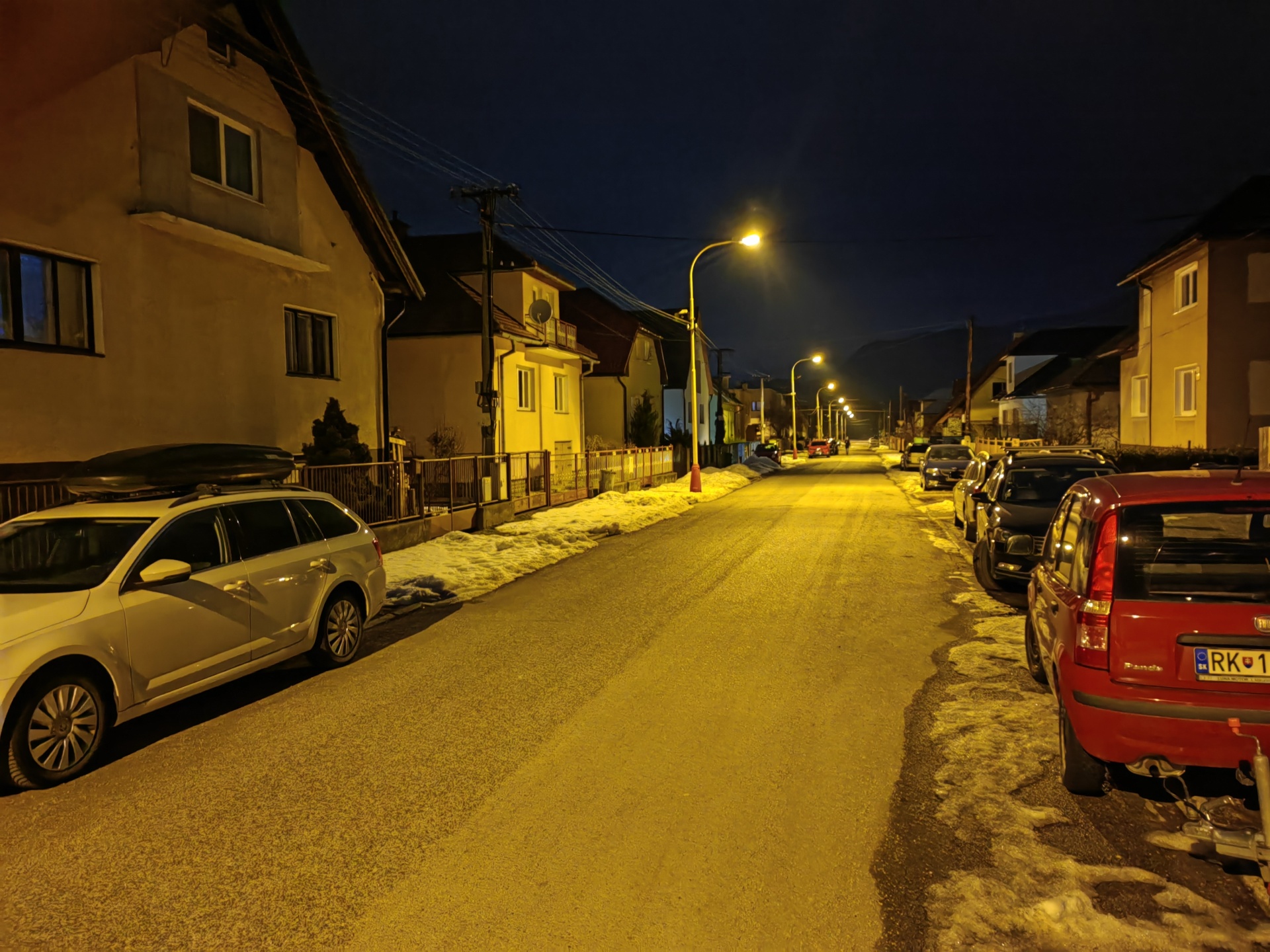 Vľavo záber v bežnom a vpravo v nočnom režime, posledná trojice je fotená ultra širokouhlým fotoaparátom