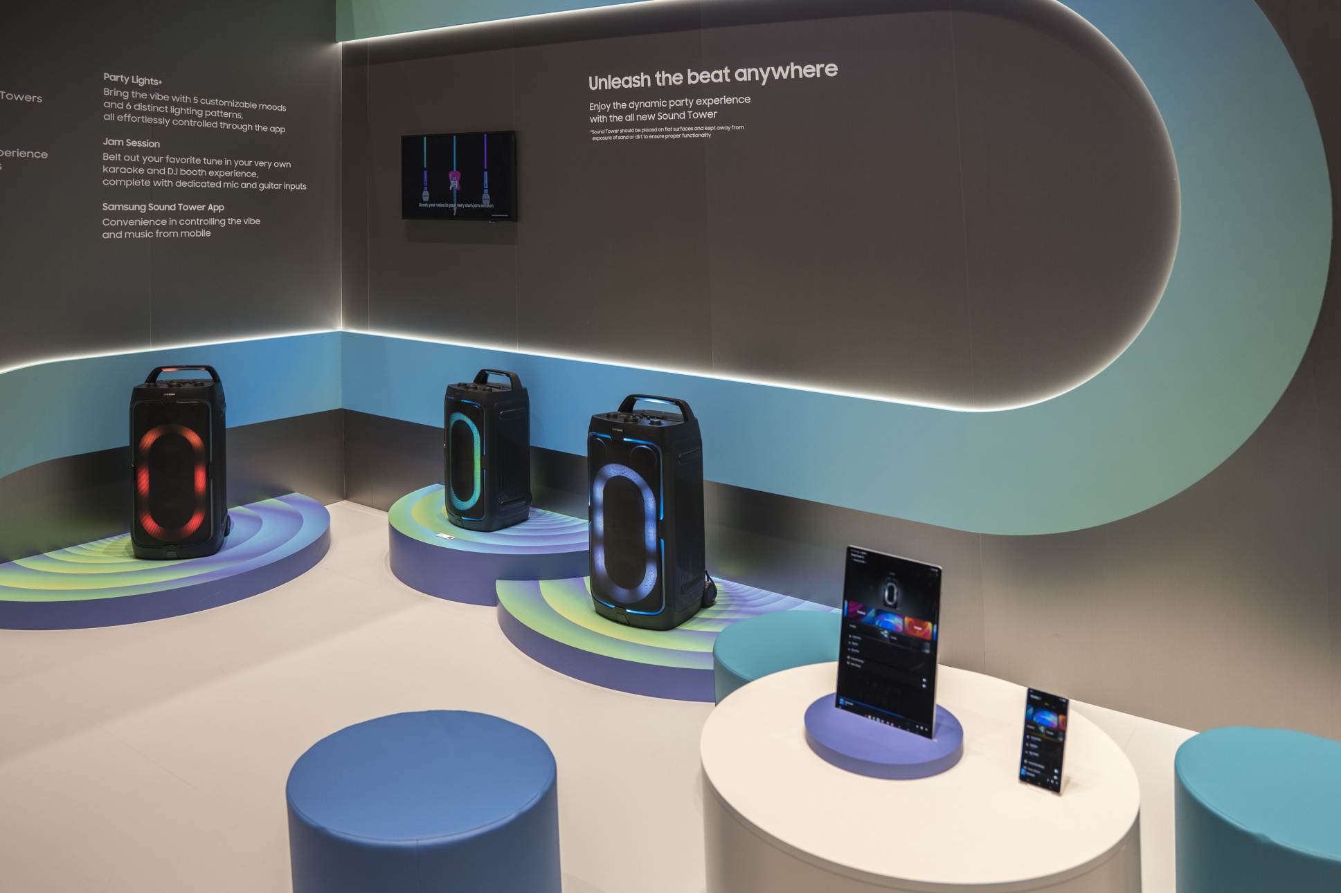 Na stánku Samsug sme mohli vidieť tiež nové párty reproduktory Samsung Sound Tower ST40F a ST50F, ktoré prinášajú silný zvuk a dynamické osvetlenie pre nezabudnuteľné akcie. S výkonom až 240 W (model ST50F) poskytujú hlboké basy a čisté výšky, pričom technológia Samsung Waveguide zaisťuje rovnomerné šírenie zvuku po celej miestnosti. Zvuk si môžete prispôsobiť pomocou viacerých režimov basov a štyroch zvukových režimov pre rôzne prostredia. Reproduktor vydrží na jedno nabitie až 18 hodín (ST50F), a vďaka vymeniteľnej batérii a vodeodolnosti IPX4 môžete párty usporiadať kdekoľvek. Ak potrebujete ešte silnejší zvuk, viac reproduktorov je možné prepojiť cez funkciu Auracast™ Group Play.
