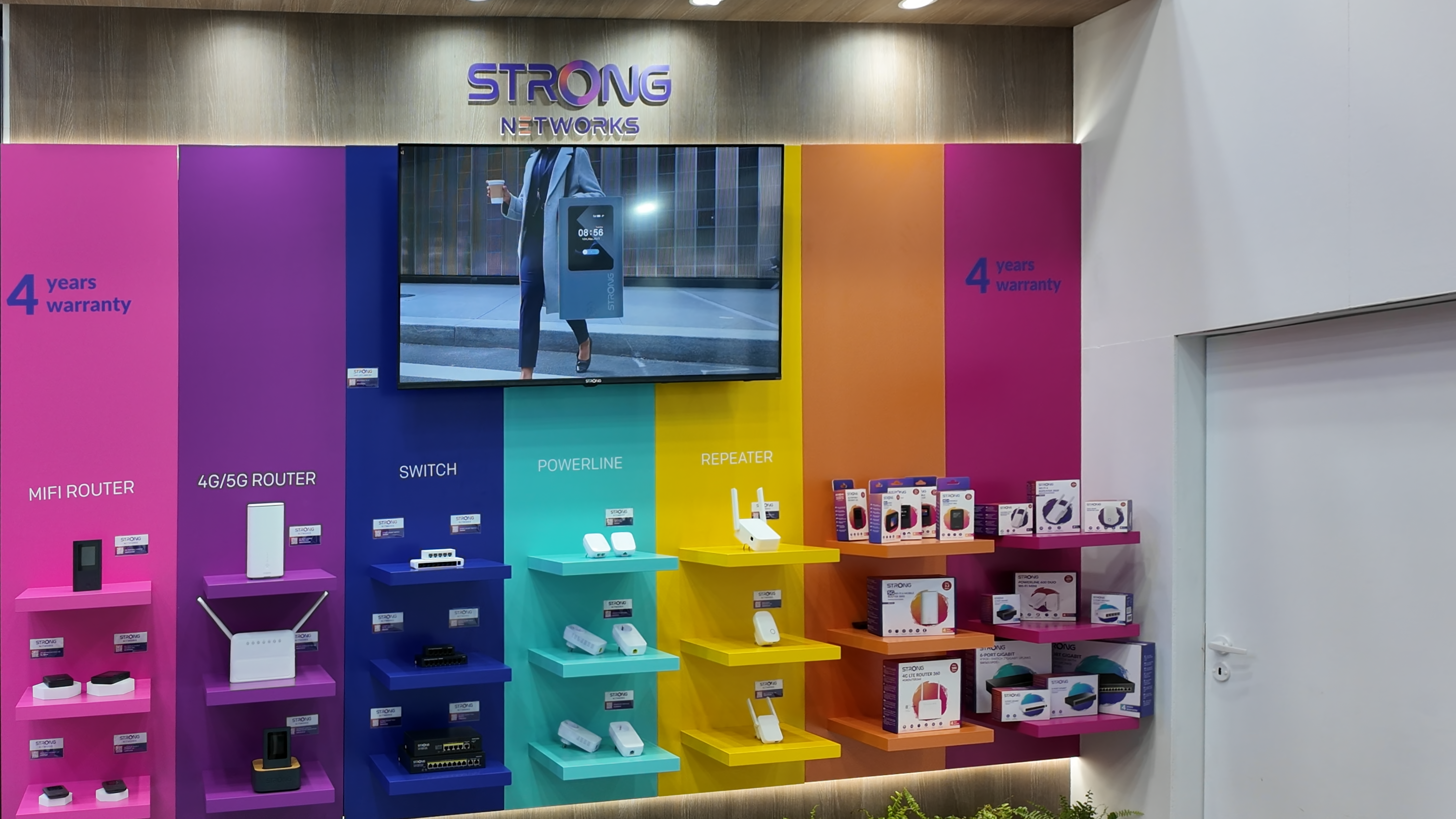 Spoločnosť Strong predstavila 27 nových produktov pre siete, zábavu a bezpečnosť. V kategórii Strong Networks uviedla 4G a 5G routery a mobilné hotspoty ako riešenie pre lokality bez optiky. 4GROUTER360 a 4GROUTER360M ponúkajú 4G do 150 Mbit/s a Wi-Fi 4 do 300 Mbit/s; kompaktné 4G+MIFI900 a 4G+MIFI900D prinášajú 4G+ do 300 Mbit/s a Wi-Fi 5 do 1200 Mbit/s. 5GMIFIAX1800 je „vreckový 5G hotspot“ s rýchlosťou do 3,4 Gbit/s a Wi-Fi 6 do 1,8 Gbit/s; voliteľný dok HOPI-D6 zvyšuje výkon Wi-Fi na 3 Gbit/s a pridáva dva gigabitové eternetové porty. Nový Wi-Fi 7 router BE3600 ponúka dvojpásmové rýchlosti až 3,6 Gbit/s s 2,5G WAN a tromi 1G LAN portmi.
