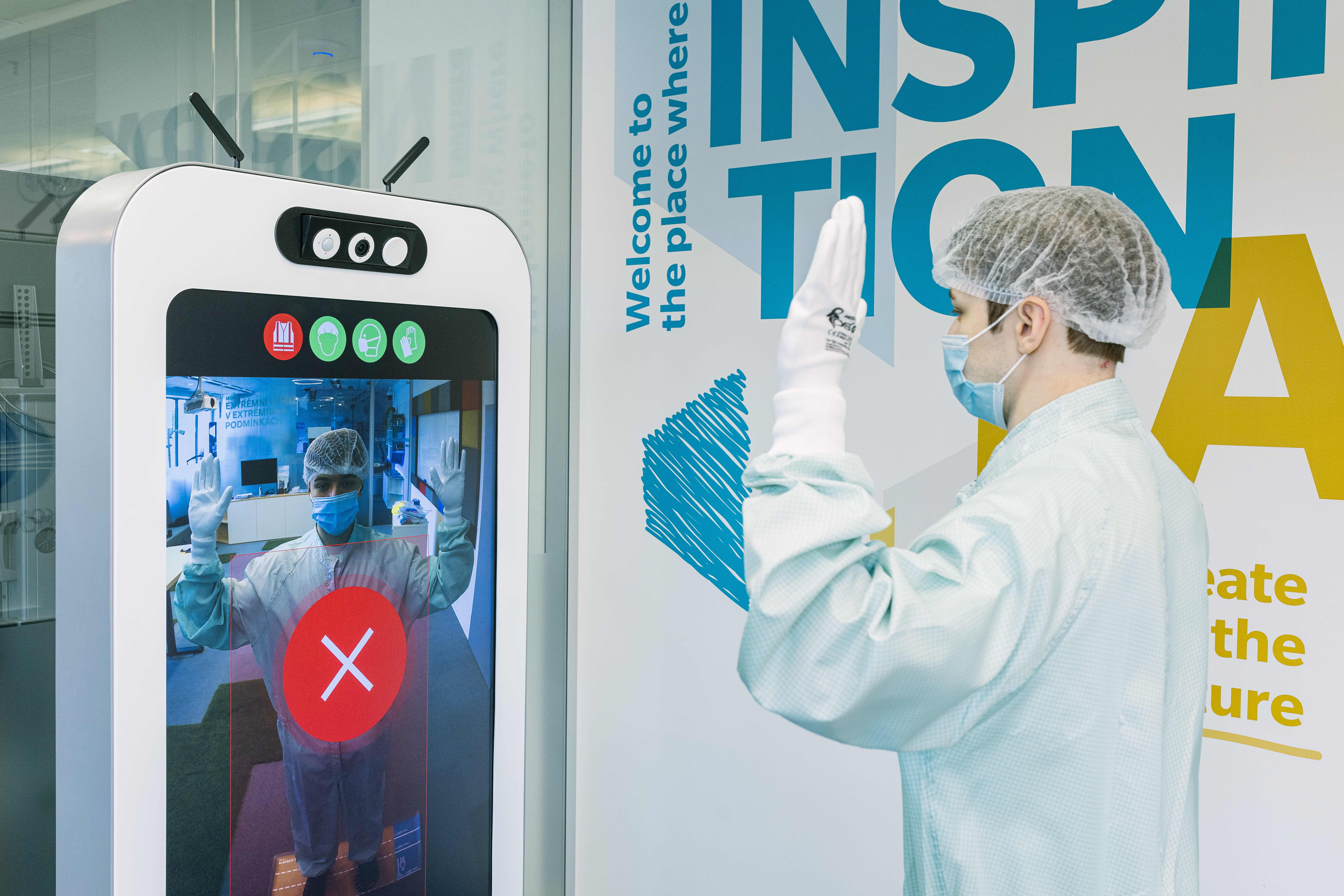 Na ochranu zdravia zamestnancov je zamerané aj riešenie Forxai Mirror, ktoré vzniklo v brnianskom inovačnom centre Konica Minolta. Technológia v podobe „inteligentného zrkadla“ kontroluje správne nasadenie ochranných pomôcok a upozorní aj na detaily, ako je trhlina v rukavici či obleku. Uplatní sa všade tam, kde je kľúčová čistota prostredia, ako je výroba čipov, v potravinárstve alebo farmácii.