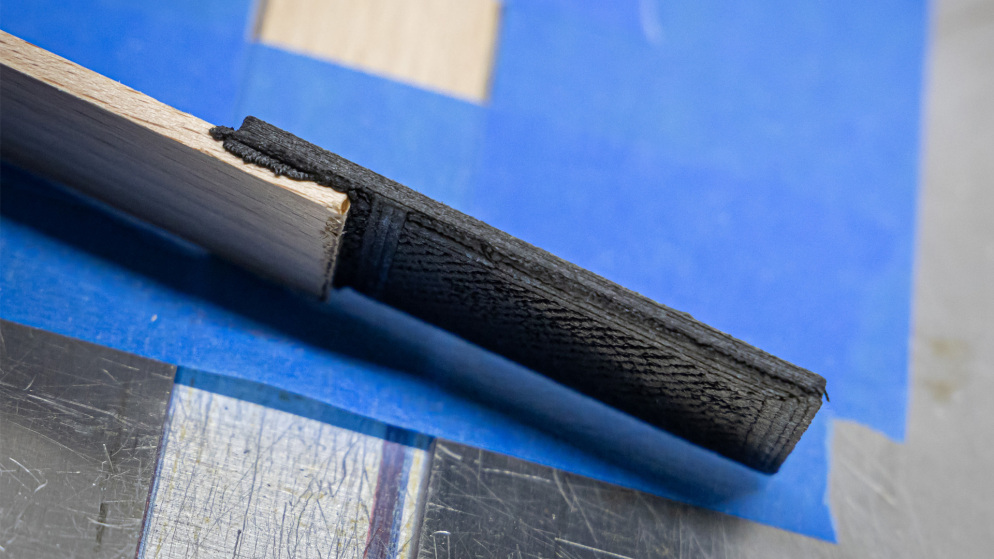 Keď príde do kontaktu s plastovým kompozitom, trenie vytvára výbuch tepla, ktorý nakrátko roztaví plast. Roztavený plast preniká do pórov v dreve a vytvára pevný spoj. Tím zistil, že toto spojenie je veľmi stabilné, ale je vhodnejšie pre dlhé 2D objekty, zatiaľ čo postup s 3D tlačou sa môže prispôsobiť rôznorodejšiemu povrchu. Proces bol patentovaný a existuje nádej, že technológia by si čoskoro mohla nájsť cestu do výroby.