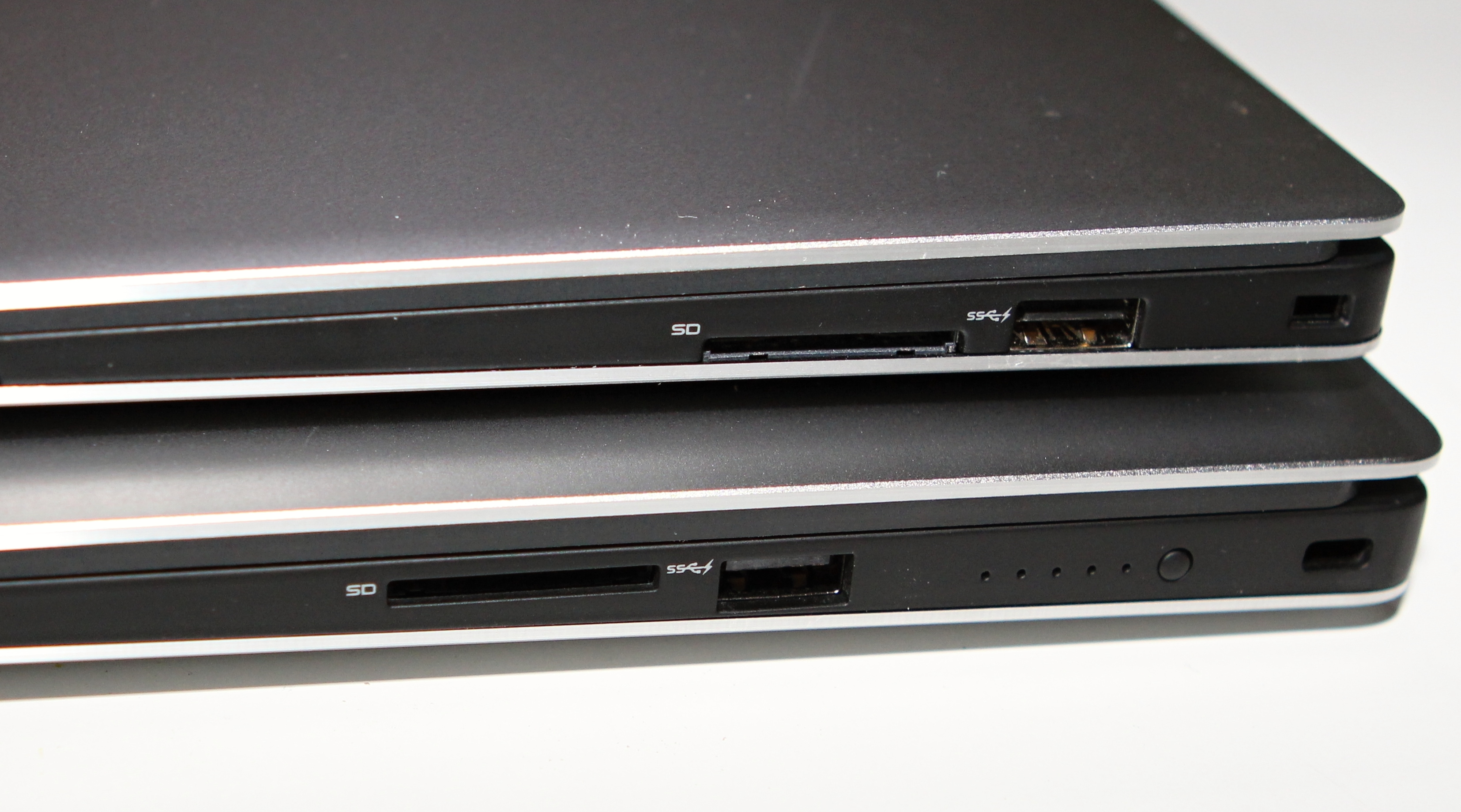 Bočný pohľad na výbavu portov, hore XPS 13,dole XPS 15