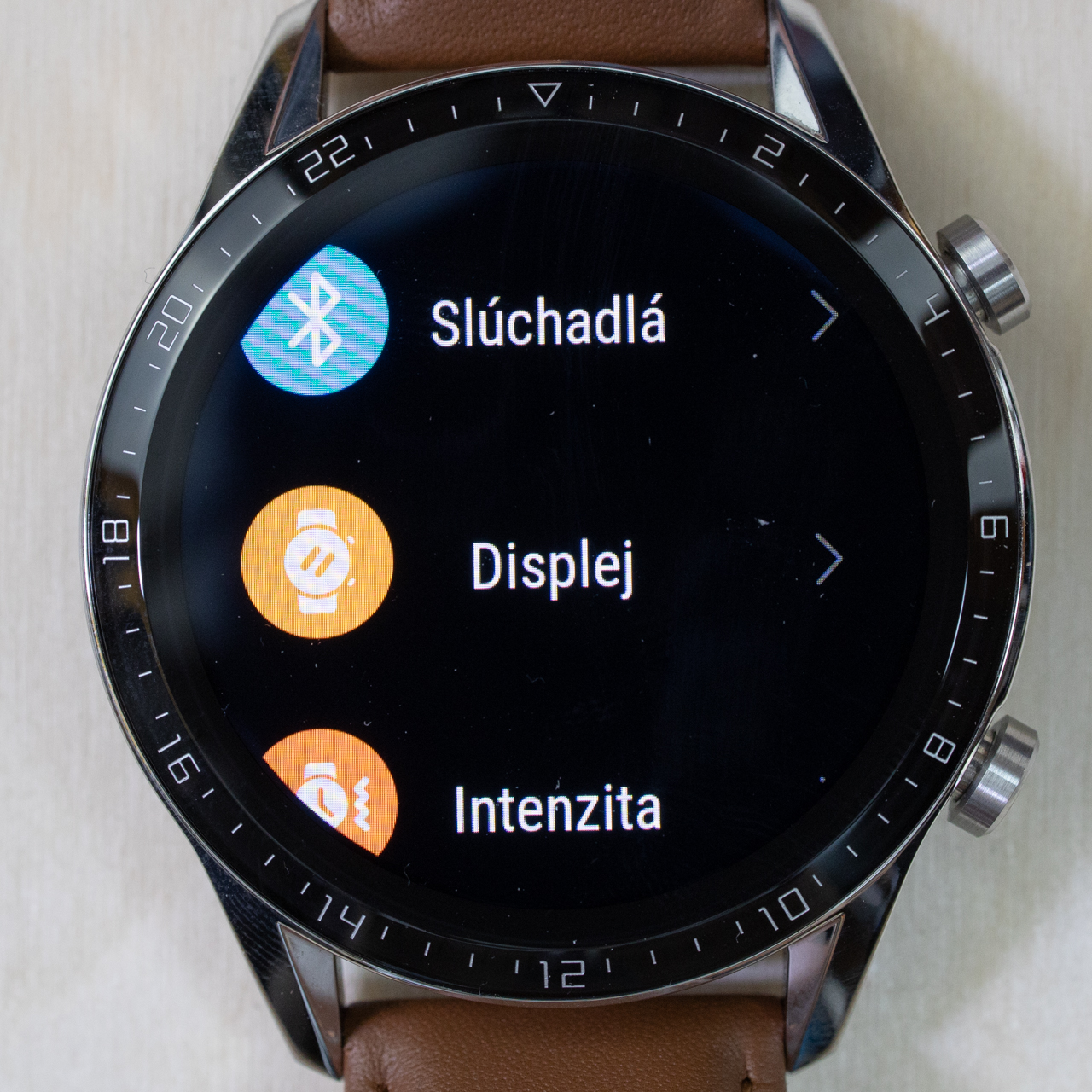 Horné tlačidlo aktivuje hlavné menu, prípadne po druhom stlačení návrat z menu na zobrazenie ciferníka. Funkciu spodného tlačidla si môžete ľubovoľne nastaviť, napríklad na spustenie monitorovania vašej obľúbenej športovej či fitnes aktivity. Gestom nadol po ciferníku sa zobrazí ponuka najčastejšie používaných funkcií a gestom nahor notifikácie.