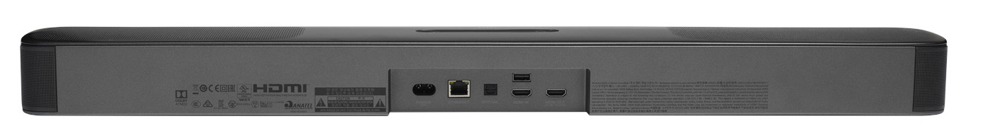 Konektorová výbava zahŕňa vstup HDMI, výstup HDMI s podporou eARC, optický digitálny vstup a eternetový konektor. K dispozícii je, samozrejme, aj Wi-Fi. Napájací zdroj je integrovaný priamo v soundbare. Na štítku je uvedený príkon 100 W, ale elektronická časť obsahuje zosilňovače s inštalovaným výkonom 5 × 50 W. V praxi to znamená, že zosilňovače dokážu využiť energiu v kondenzátoroch zdroja a výkonovo pokryť špičky, napríklad údery na bicie, trvalý výkon však neprekročí 100 W, takže teoreticky, ak zanedbáme účinnosť zosilňovačov pri rovnomernom rozložení výkonu, pripadne na jeden reproduktor 20 W.