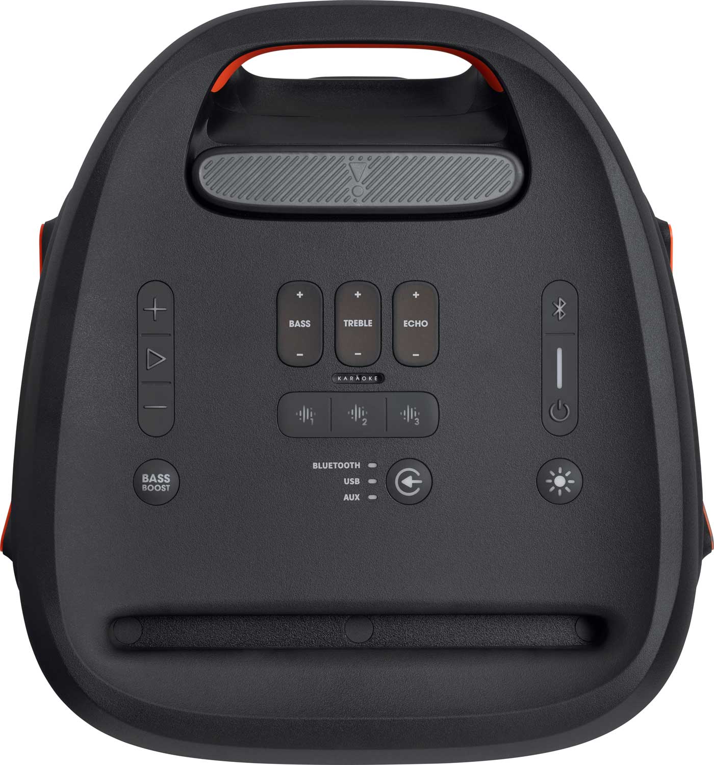 Základná vlastnosť PartyBoxu je, pochopiteľne, funkcia bluetoothového reproduktora, takže si ho musíte najprv spárovať s vaším smartfónom alebo iným zariadením a môžete ihneď začať s produkciou hudby. Ak si chcete váš reproduktor podrobnejšie prispôsobiť, prípadne nastaviť hudbu, máte k dispozícii voľne dostupnú aplikáciu, pomocou ktorej je to teraz možné. Okrem prehrávania cez bluetooth si môžete vašu hudbu nahrať na USB kľúč a prehrávať ju priamo z neho. Ďalšia možnosť je využiť linkový audiovstup. Keby jeden reproduktor nestačil, môžete pripojiť kompatibilné reproduktory bezdrôtovo prostredníctvom TWS (True Wireless Stereo pomocou bluetoothového pripojenia až k dvom párty reproduktorom) alebo káblovo prostredníctvom jedného výstupu AUX k druhému. Na vrchnej strane reproduktora je umiestnený ovládací panel, z ktorého môžete spúšťať prehrávanie, ovládať hlasitosť, párovanie s bluetooth, zapnúť režim Bass Boost, prepínať svetelné efekty, regulovať basy, výšky a ozvenu a takisto spúšťať trojicu predprogramovaných zvukových efektov. Je tu aj tlačidlo na prepínanie vstupov s LED indikáciou vstupu, ktorý je zvolený. Na zadnej strane pod veľkou gumovou krytkou nájdete dvojicu vstupov na mikrofóny alebo gitaru, audiovstup na 12 V napájanie, výstup USB na napájanie z telefónu a konektory na prepojenie s ďalšími reproduktormi.